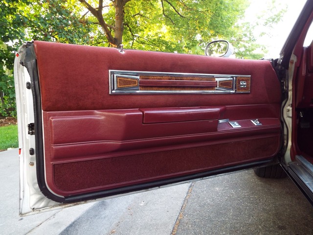 Very Nice - Matching Maple Red Cloth and Vinyl Faux Wood Grain Accented Door Panels