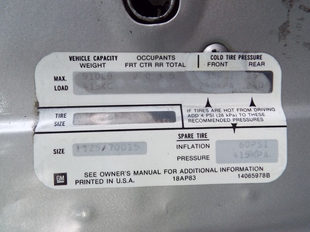 Original Trunk Lid Mounted Jacking Instruction Sticker