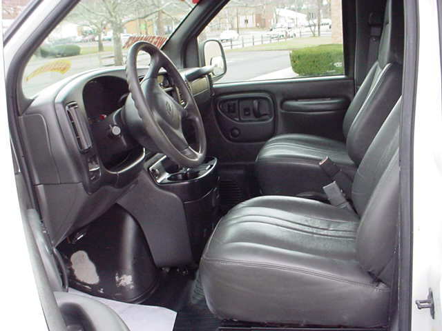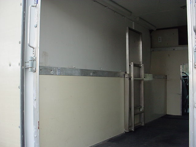 We drove this van for about 100 miles, and it seemed to do everything that we asked of it. It runs out strong and smooth with no offensive interior odors. The headlights, taillights, blinkers, 4 way flashers, wipers, horn, heater, radio, rear interior lighting, cabinet doors, and stainless steel folding table are all in good working order.  The rear floor space is 12ft long, the floor to inside ceiling height is 6 feet.  The access opening walk through from cab to rear area is 42 iches high x 20 inches wide.  There is also a power outlet in the rear area in the top driver side corner (see photo)