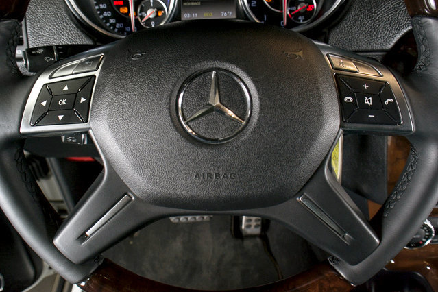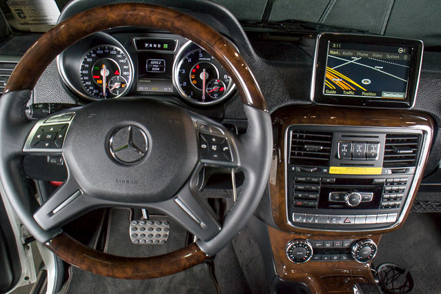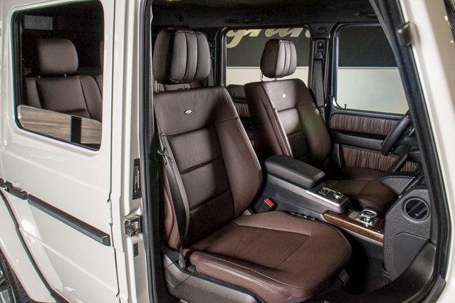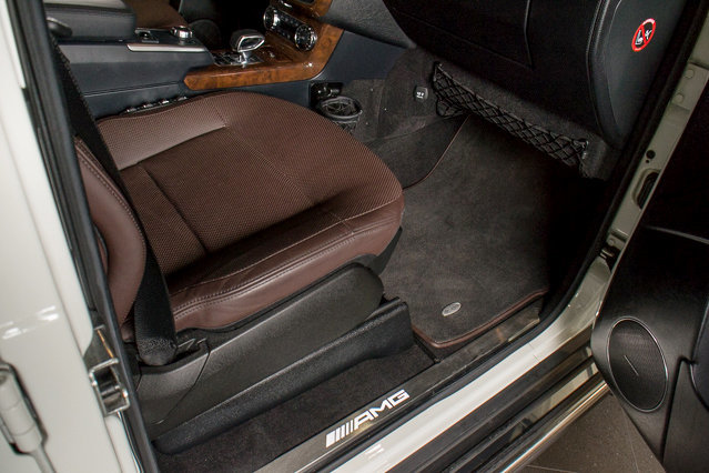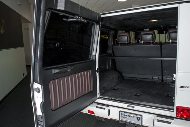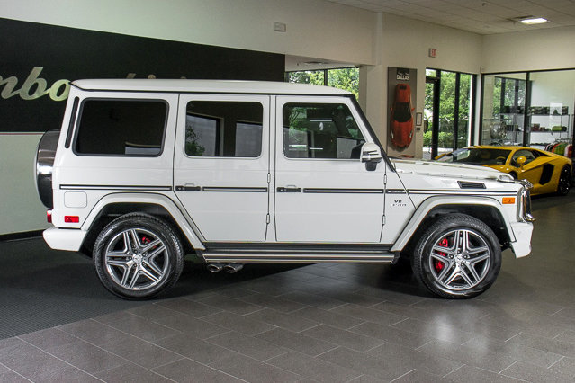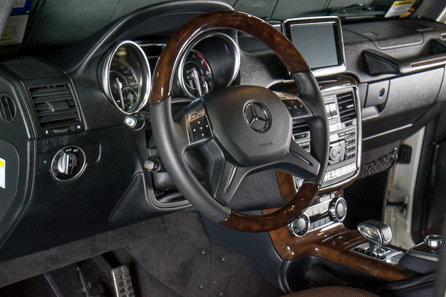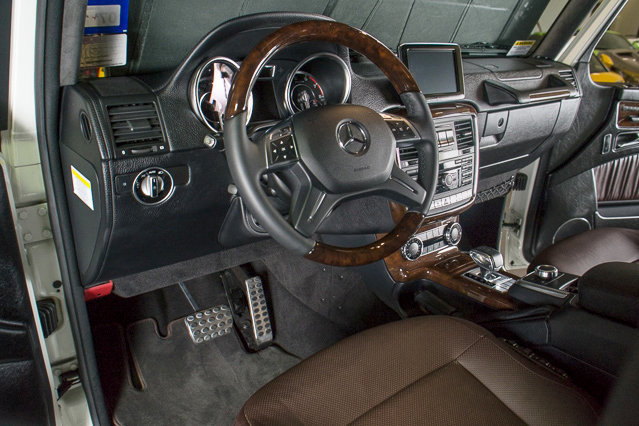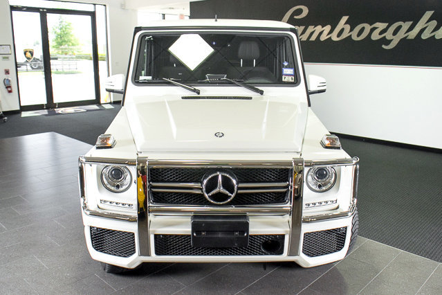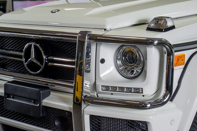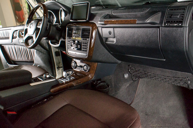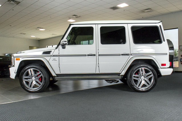 This is a smoke free Carfax certified 2013 Mercedes G63 AMG equipped with a 5.5L 544HP Twin Turbo V8 engine and a 7-speed automatic with sport shift transmission. This suv is finished in a beautiful Arctic White exterior color and Black with Auburn Brown leather interior along with Burl Walnut wood trim throughout.
