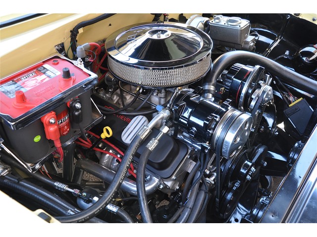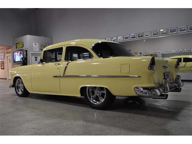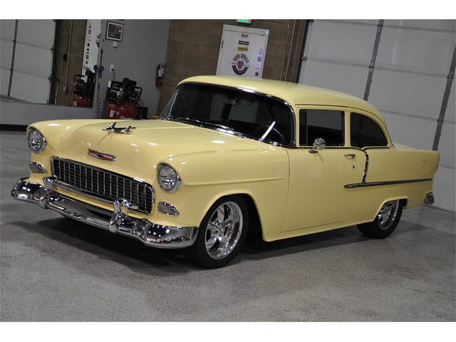 There is just something about a mean looking ’55 Chevy that gets my blood pumping big time. It is simply one of the most iconic body styles ever designed and will never go out of style. When we took delivery of this gorgeous 1955 Chevrolet 210 Custom, we all immediately agreed that she is a ‘winner’ in every respect. This beautiful classic was the recipient of a frame-off restoration/build, and as you can see they created an absolute showstopper. The 100% rust-free sheet metal is laser straight all of the way around the car, with perfect body alignment & gaps. The correct 1955 Chevrolet paint color, Harvest Gold, which looks stunning on this machine, was professionally applied and buffed to a mirror-like shine. Again, I think this color looks amazing on the car and gives it quite the nostalgic appearance. All of the chrome, bumpers, & stainless trim are show quality throughout. The glass is tinted which gives the car an ominous look. She also sits just right, has a perfect stance and simply looks great from every angle. When you open the driver’s door, you will discover a beautiful custom black interior that still has the original stock qualities, but features all of the creature comforts needed to assure that you are riding in absolute style. Features include, Power Black Vinyl Bench Seat, Power Windows, Chrome Door Hinges, Painted Dash w/ Billet Inserts, Dakota Digital Gauges, Chrome Ididit Tilt Steering Column, Billet Specialties Steering Wheel, Vintage Air Conditioning, Cruise Control and USB Custom Sound System. All of the gauges, lights, blinkers, etc. function properly as you would expect, and the Vintage AC blows nice & cold!  This custom interior is extremely comfortable as well as highly functional, and fits the style of the car perfectly. Pop open the hood and nestled inside the beautifully detailed engine bay resides a brand new GM ZZ383 Crate motor, pumping out 425 horsepower. Everything under the hood is brand new from front to back. The ZZ383 is linked to a 700R4 Overdrive transmission, which feeds power to the Ford 9” rear axle w/ 4.11 gears. She starts, idles, runs & drives perfectly, with loads of power when it’s needed. The Power Steering & Power Disc Brakes make driving around town effortless. The custom ‘Be Cool’ radiatorw/ dual fans keeps her running nice & cool even in 100-degree desert weather. This mean machine also sounds incredible thanks to the custom 3” stainless exhaust system. Look closely at the undercarriage photos and you will see that this 1955 Chevrolet 210 Custom looks just as nice from the bottom and she does from the top. She sits on beautiful Boyd Coddington Wheels wrapped with new BF Goodrich tires (255/50Z/R17 on the rear & 245/45/ZR17 up front). Great attention to detail and too many man hours to count produced an absolutely gorgeous 1955 Chevrolet 210 Custom that can be driven & enjoyed, but one that will also bring home a First Place trophy from any car show that you decide to enter. If you have been searching for a stellar ‘55 Chevy with all of the right stuff, your search is over. Enclosed shipping is available anywhere in the world at the buyer’s expense. Please do not make an offer on this vehicle unless you have the funds available now and intend to purchase the car. You are more than welcome to inspect this vehicle at any time before the end of the listing. I also reserve the right to end the listing at any time. Please, no emails! A serious buyer will always pick up the phone to discuss the vehicle. If you are a serious buyer and have any questions at all, please do not hesitate to call Steve @ (435) 703-0003 or (435) 628-2866. Thank you!