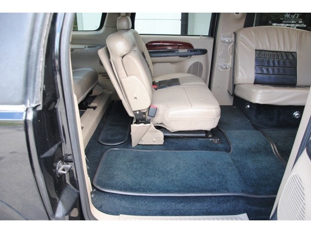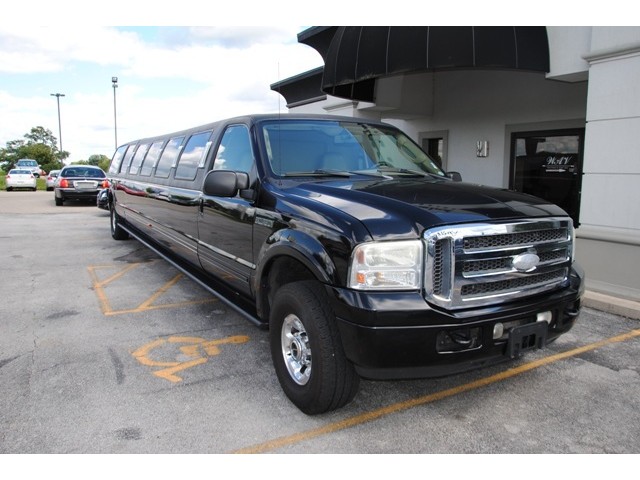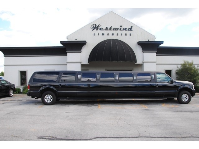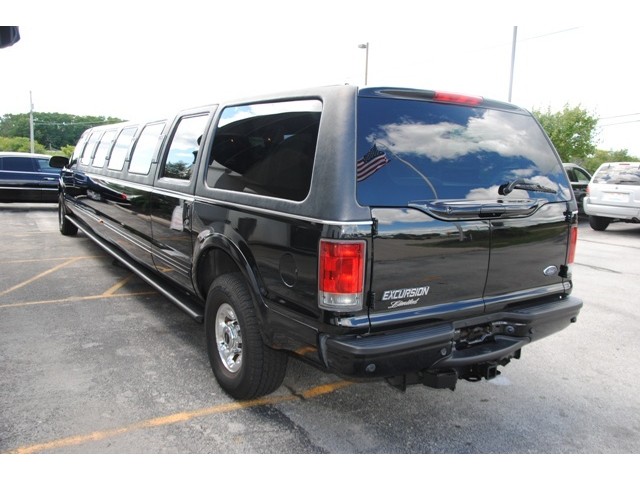 2005 FORD EXCURSION 175” STRETCH BY WESTWIND,  BLACK EXTERIOR, TAN AND BLACK 2 TONE ALTERNATING J SEAT WITH REAR V I P SEATING INTERIOR, FIBER OPTIC MIRRORED CEILING WITH COLOR WHEEL, FIBER OPTIC HALO LIGHTING WITH COLOR WHEEL, FIBER OPTIC BAR WITH STARGAZER AND COLOR WHEEL, COLOR MONITORS, OVERHEAD CONTROLLS WITH STEREO CD, DIVIDER, ICE CHESTS, CHAMPAGNE WELL, CRYSTAL ROCKS AND FLUTES, BLACK CARPETS WITH BLACK OVERLAYS There is no damage evident on this vehicle.This is a garage kept vehicle.The engine on this vehicle is running properly.The mileage represented on this vehicle is accurate.This vehicle has a smooth shifting transmission.All power equipment is functioning properly.This vehicle has no known defects.The overall condition of this vehicle's exterior is average.There is an average amount of wear on the interior.There is approximately 75% of the tire tread remaining.
