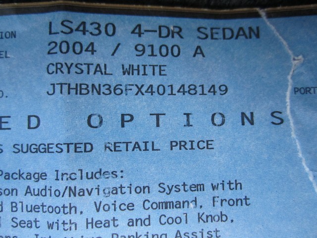 • VIN: JTHBN36FX40148149