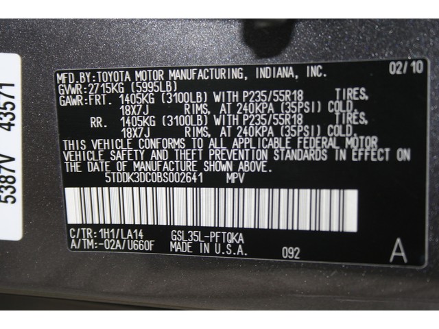 Finished in most desired Predawn Grey Mica Exterior with beautifully kept Light Gray Leather Interior and Wood Trim.  This real nicely powered 3.5 liter 6 Cylinder Toyota Comes fully loaded with many options including: Factory Navigation w/Back Up Camera, Factory Rear Entertainment DVD, Bluetooth, JBL Premium Sound w/CD, Satellite Radio, Auxiliary Input, MP3, Double Glass Moonroofs, Dual Power sliding Doors, 2nd Row Captain Chairs, Power Rear Hatch, Dual Power Front Heated Seats, Dual Digital Climate Control, Front and Rear Park Sensors, 18" Multi Spoke Alloy Wheels, Roof Rails, Rear Privacy Glass, Premium Sound w/In Dash CD Changer, Full Power Tailgate, Dual Power Sliding Doors, Leather Wrapped Steering Wheel w/Control Functions, Universal Homelink, Keyless Go, Remote Keyless Entry w/Factory Anti-Theft and much much more!