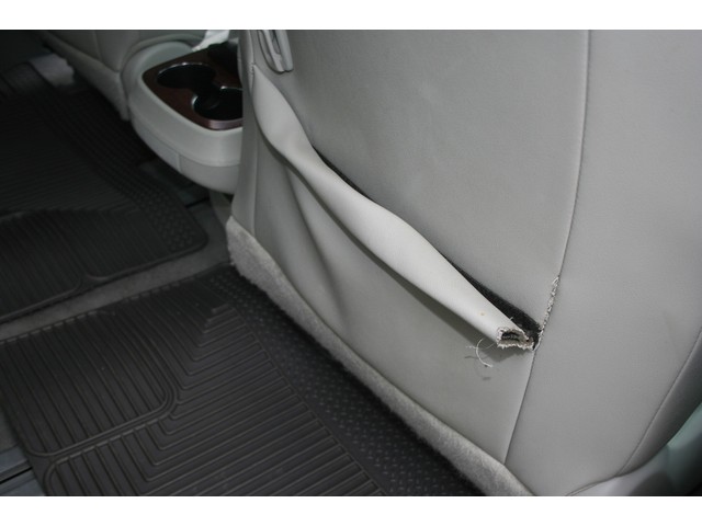 -2nd Row Storage Compartment shows tear in Leather.  This can easily be repaired at any interior/upholstery shop(Pic Attached)