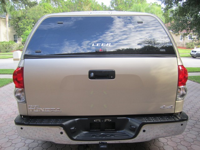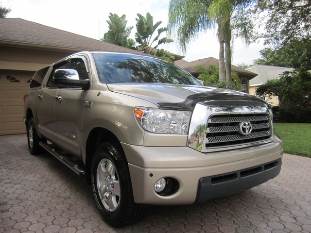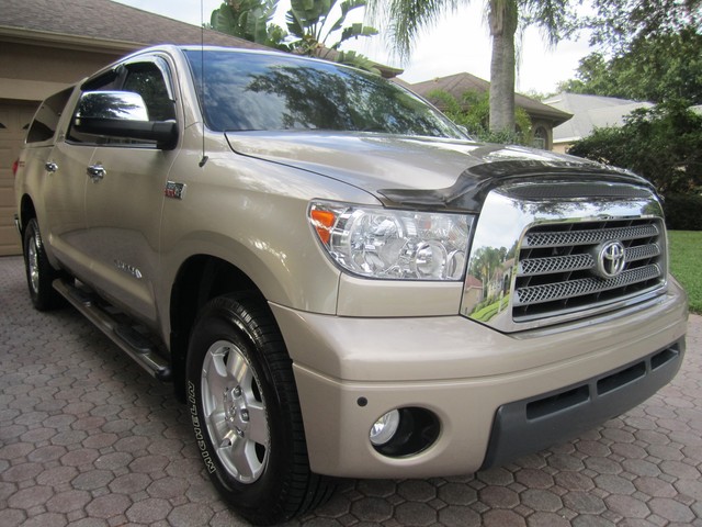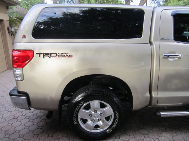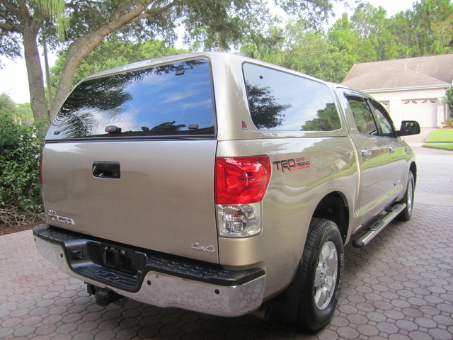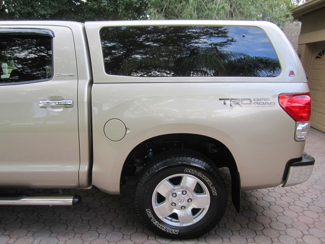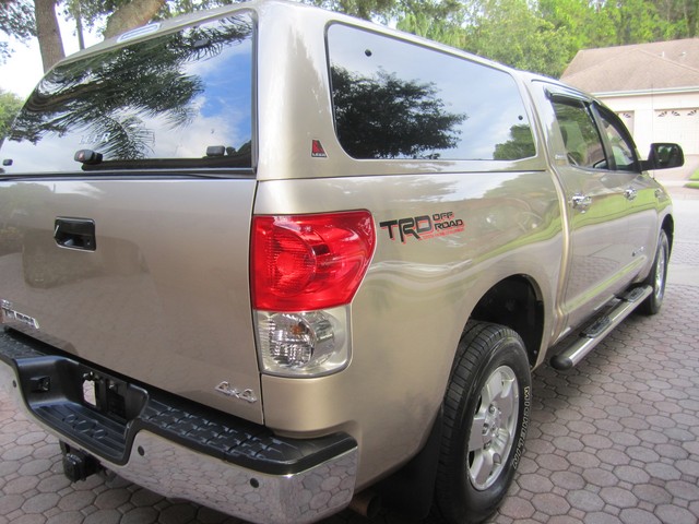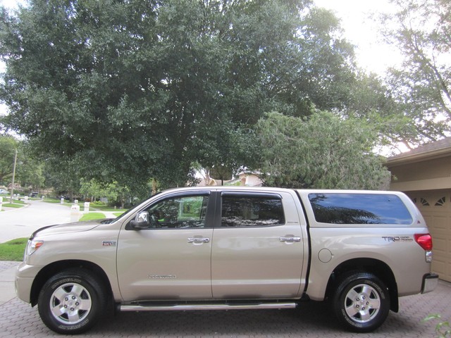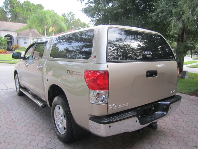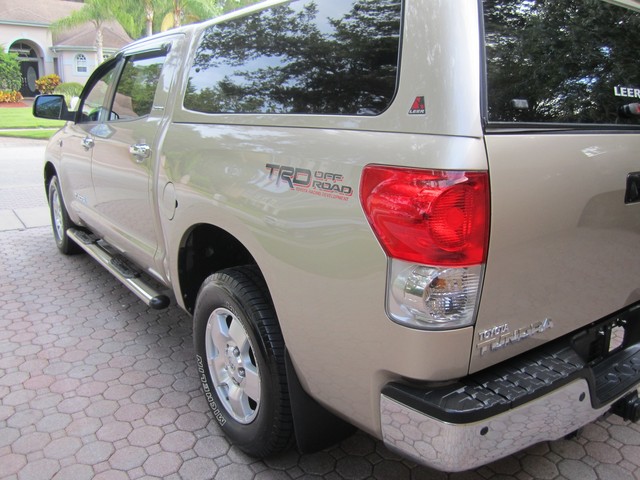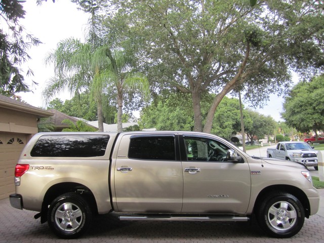 CONGRATULATION ON FINDING ONE OF THE CLEANEST, AND NICEST "2008 TOYOTA TUNDRA SUPER-CREW CAB 4DR LIMITED 4X4 TRD PACKAGE" ON THE PLANET...FOLKS THIS TRUCK IS LIKE BRAND NEW...THIS AMAZING TUNDRA HAS IT ALL, I DON'T THINK THERE IS ANYTHING THAT IT DOESN'T HAVE, IT IS LOADED WITH EVERYTHING YOU CAN GET ON ONE(THE BEST FULL-SIZE PICKUP TRUCK THAT MONEY CAN BUY) PERIOD, THERE IS NOT A BETTER ONE OUT THERE...NOT ONLY DOES IT HAVE EVERYTHING AND IT IS LIKE NEW INSIDE AND OUT,  IT IS A ONE ELDERLY FL. OWNER SINCE BRAND NEW...CLEAN CARFAX AND AUTOCHECK, NON-SMOKER, DOESN'T EVEN LOOK LIKE IT HAS EVER BEEN EATEN IN, OR I DON'T THINK IT HAS EVER BEEN CUSSED IN:)...YOU WILL GET THE BEST COLOR COMBINATION THERE IS, AND THE INTERIOR IS IN EXCELLENT CONDITION, AND IT IS PERFECT, I HAVE GREAT ADMIRATION FOR PEOPLE THAT TAKE SUCH GREAT CARE OF THEIR VEHICLES, VERY RARELY YOU WILL FIND ANYTHING THIS NICE, LOOKS LIKE THEY ONLY DROVE IT TO CHURCH ON SUNDAYS...THE EXTERIOR IS THE SAME WAY IT IS IN EXCELLENT CONDITION AS WELL, THERE IS HARDLY A MARK ON IT, NO DENTS, DINGS, SCRATCHES, IT LOOKS AND SHINES LIKE BRAND NEW...NAVIGATION, SATELITE RADIO, YOU WILL ALSO GET SOME ALMOST BRAND NEW "MICHELIN TIRES", THE VERY NICE 18" ALLOY WHEELS THAT ARE LIKE NEW ALSO...YOU WILL EVEN GET A MATCHING COLOR FIBERGLASS "LEER" CAMPER SHELL, ALL INSULATED, SLIDING WINDOWS WITH SCREENS, IT EVEN HAS A "BED CARPET" OVER THE BED-LINER...HAS ALL THE 4 ADJUSTABLE TIE-DOWNS AS WELL,...FOLKS THIS IS THE TRUCK YOU HAVE BEEN LOOKING FOR, YOU WILL LOVE IT...PLEASE WATCH THE VIDEO AT THE END OF THIS DESCRIPTION AND TAKE A LOOK AT ALL THE PICTURES I HAVE TAKEN, EVEN THE UNDERNEATH OF THIS TRUCK IS LIKE NEW, NEVER IN THE SALT OR SNOW OR MUD, IT DOESN'T EVEN LOOK LIKE IT HAS BEEN IN THE RAIN...TRULY A "DIVINE FIND" AND THE NEXT OWNER WILL BE VERY VERY HAPPY WITH IT...YOU WILL GET THE VERY NICE "ALL WEATHER TOYOTA TUNDRA RUBBER FLOOR MATS FRONT AND REAR, ALL THE BOOKS AND MANUALS, IT HAS THE VERY NICE RUNNING BOARDS, TOWING PACKAGE WITH THE FACTORY (TRANSMISSION & OIL COOLER) 6SPEED AUTOMATIC TRANSMISSION, TOWING MODE, CLASS 3 HITCH, AND WIRING HARNESS, YOU WILL ALSO GET THE BACK-UP CAMERA. MAY HAVE A FEW MORE MILES BY THE END OF THE AUCTION. PLEASE IF YOU HAVE ANY QUESTIONS PLEASE GIVE US A CALL JACK AT 727-460-4283 OR CAROL AT 727-798-7161 OR EMAIL US. THANK YOU GOD BLESS YOU AND HAVE A FANTASTIC DAY....