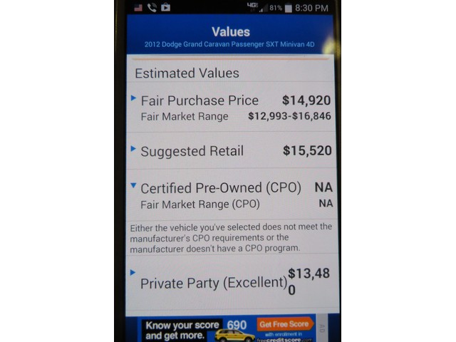 • 2012 Dodge Grand Caravan SXT V6-3.6L FFV,1 owner, Xclean,Pwr seat,doors,pwr gate