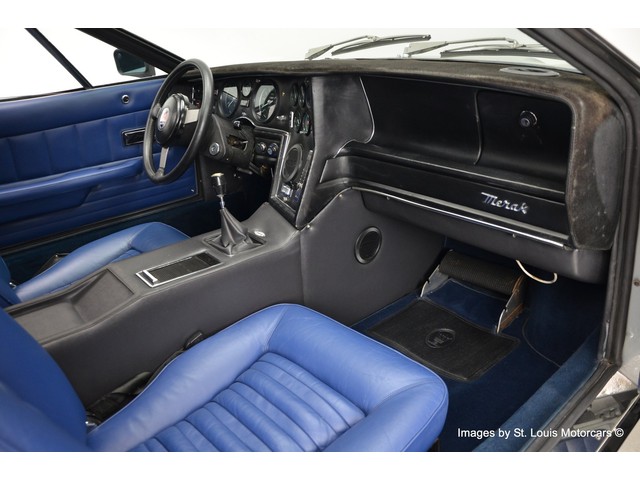 You are viewing a 1978 Maserati Merak SS Coupe (Original USA Model) 5-speed manual finished in Argento Silver over Blue Connoly Hides with 13,619 miles.