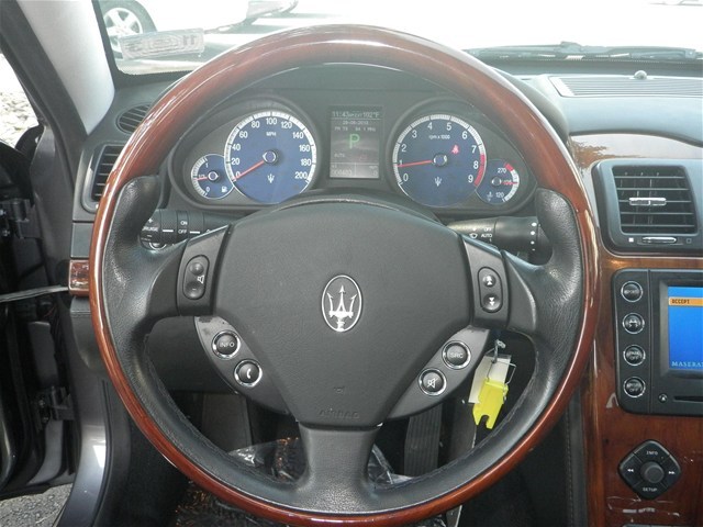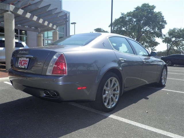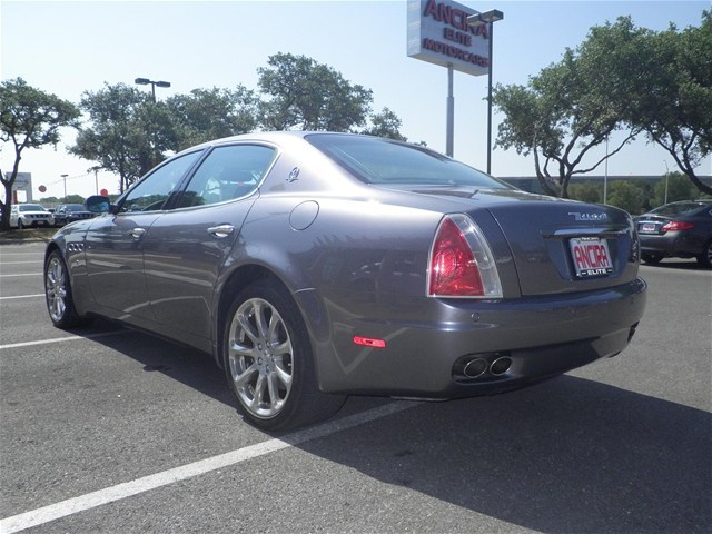 Used 2008 Maserati Quattroporte is now for sale in San Antonio at Ancira Elite Motorcars. Just Arrived! Standard features include: Leather seats Navigation system Remote power door locks Power windows with 4 one-touch Heated drivers seat Sunroof - Express open/close glass Automatic Transmission 4-wheel ABS brakes Air conditioning with dual zone climate control Cruise control Audio controls on steering wheel Xenon headlights Traction control - ABS and driveline Driver memory seats Memory settings for 3 drivers Multi-function remote - Trunk/hatch/door Power heated mirrors Heated passenger seat 8-way power adjustable drivers seat Head airbags - Curtain 1st and 2nd row Passenger Airbag 4.2 liter V8 DOHC engine with variable valve timing 400 horsepower Tilt and telescopic steering wheel Fuel economy EPA highway (mpg): 18 and EPA city (mpg): 12 Rear-wheel drive 4 Doors Front fog/driving lights Tachometer External temperature display Interior air filtration Rear spoiler - Lip Clock - Analog Transmission hill holder Self-leveling headlights - Self-leveling Stability control Residual heat distribution Trip computer.... This Maserati Quattroporte is a must see. Stunning!! WEB SPECIAL. 2008 Maserati Quattroporte Base Automatic with less than 10k miles pretty much brand new.. Great safety equipment to protect you on the road: ABS Xenon headlights Traction control Curtain airbags Passenger Airbag...It has nice features like: Leather seats Navigation Power locks Power windows Heated seats.... Call Ancira Elite Motorcars at (210) 697-3000 in San Antonio for your Maserati Quattroporte.