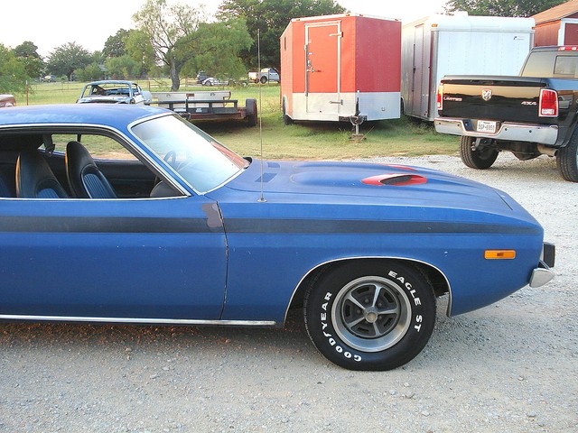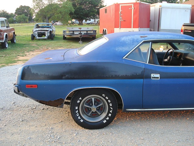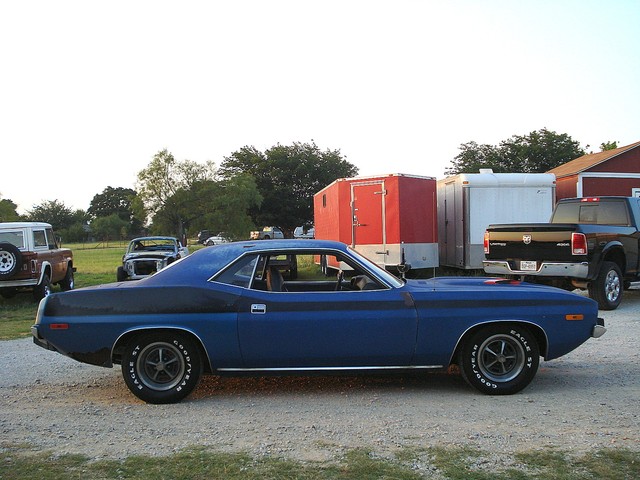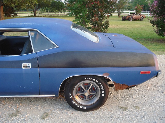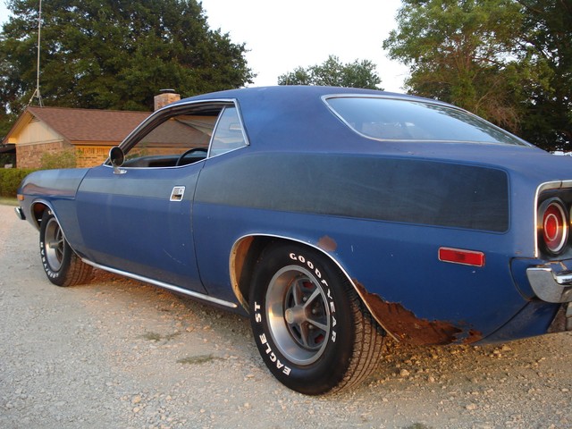 NO RESERVE.   BARN FIND.....1973 Plymouth CUDA 340, 4-Speed, 1-Owner Export Car.  REAL DEAL Numbers Matching.   This is a very unusual find and optioned car; please read the full details and call with any questions.  I can only give my personal opinion and details from what I was told and based on my inspection. Buyer inspection welcome.  Check out the video above; she starts right up, shifts into all gears correctly, but does not brake as good.   This car will drive on and off a trailer but has not been driven in many years so will need to be transported.  Bottom line, here is a great investment quailty restoration project.  Numbers details; VIN: BS23H3B230064.  Fender Tag shows the following codes (Also, see pic)....R11, V6X, EN2, M21, M25, M31, M88, N41, N42, GB5, I, B41, C16, C56, J54, GB5, A6B5, 000, B16, E31683, E55, D21, BS23, H3B, 230064.  Export tag on fender and vin stamped in radiator support.  History details; This cuda was purchased on 8-1-1972 by Jounny Ragan and factory exported to Japan, the export tag is still on the car next to the fender tag.  The car is semi very original, it has had some repair work in the trunk lid and the rear quarters, car is Factory GB5 blue, but was repainted a darker exterior blue and some of the interior panels were painted a darker blue 20+ years ago.  Owner disclosed that she has her original engine, transmission and rear-end.  The factory rear defrost and radio have not been removed.  Wipers work, headlights and side lights come on, didnt see the tail lights on.  I was told for the past 20 years she has been sitting under a car port as the owner could no longer drive her.  I know this sounds crazy, but we added a battery and about 10 gallons of gas and it didnt take much for her to start up.  The destributor has been changed out, dont know if the carburator is original or not...see pics.  I have had this car in our shop for the past year and I wanted to restore this car to factory original; but bottom line, we are a Mustang restoration and custom build business, so this car needs to be in the hands of a Mopar expert that can do her justice.  The car has some original delivery papers with her and original owners manual.  I have only stored and driven the car short distances since the find about a year ago.  I have not looked for build sheets other then putting my hand under the seats and didnt find anything.  Rust Issues:  Trunk floor and lower rear quarter panels are rusted as you can see in the pictures.  The battery tray is rusted out, but under that, it looks good.  The lower rear quarters show rust effected the outside sheet metal more then the inside, as you can see in the picture.  However with out pulling the car 100% apart and media blasting it, you never know 100%.  The trunk lid has had previous bondo work, may require a new trunk lid depends on cost and skill level of work.  Overall Opion:  The car had a cheap repaint 20+ years ago.  I was suprised how she fired up and so many items on her worked.  She seams all there and with the desirable factory and options, this would make a great and rare car to restore that also has great investment potentional, thats why I bought the car.  But with our business, the car would sit for 2-3 years before I could even start on it.  Call me at 682-333-7433 with any questions.  Yes I like the car and yes I see the potential, but dont bid on this car if you your not sure what your doing. This car has been sitting; she has not been on the road and may need everything restored, reconditioned, rebuilt or replaced...I dont know and neither will anyone else untill the restoration process begins.