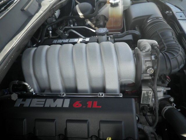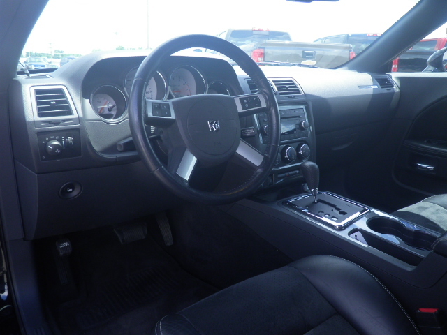 This is a very nice black 2009 Dodge Challenger SRT8 with a 6.1L V8 Hemi and automatic transmission. With 425hp and 421 lb-ft of torque it is sure to perform. This SRT8 is loaded with options such as leather heated seats, Navigation, 8 way adjustable driver seat with lumbar support, 4 way adjustable front passenger seat with lumbar support, steering wheel audio controls, 6 Boston Acoustic speakers with built in Amp, and a whole lot more!