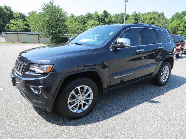 This steel metallic 2014 Jeep Grand Cherokee 4WD Limited is one of the most luxurious and versatile midsize SUVs on the market! A well-envisioned 8-speed automatic transmission allows for impressive average gas mileages of 17/24 MPG! 4WD allows for effortless off-roading endeavors and standard Quadra-Trac I aids in all types of terrain and inclement weather conditions! Equipment on this loaded vehicle includes ParkSense park assist with back-up camera, navigation, push button start, paddle shifters, dual-pane sunroof, beige leather upholstery, power front seating with lumbar support (driver memory seat), heated and ventilated front seats, heated second row seating, rain sensing wipers, heated tilt/telescoping leather-wrapped steering wheel with mounted audio controls, 8.4 touchscreen infotainment system with Bluetooth integration, premium sound system with AM/FM/CD/USB interface/MP3 and Sirius Satellite connectivity, Homelink (integrated garage door opening system), automatic HID headlights, LED daytime running lights, auto-dimming rear view mirror, power liftgate and 18 inch aluminum wheels! This vehicle is Jeep Certified, with a 100,000 mile/7 year from original in-service date extended warranty and also yields a clean, one owner Carfax history! Call North Point Chrysler Dodge Jeep Ram today to schedule a test drive in this powerful and luxurious 2014 Jeep Grand Cherokee Limited! - - - 2014 Jeep Grand Cherokee 4WD 4dr Limited