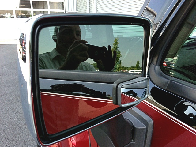 in 2-Tone Black over Burgundy Paint and a Black Leather interior and