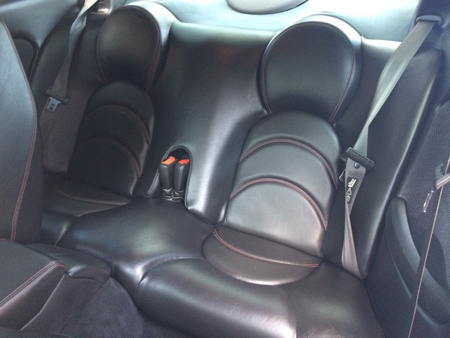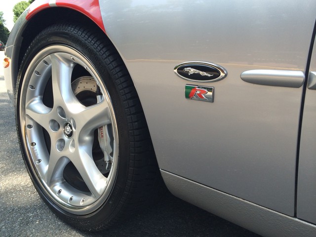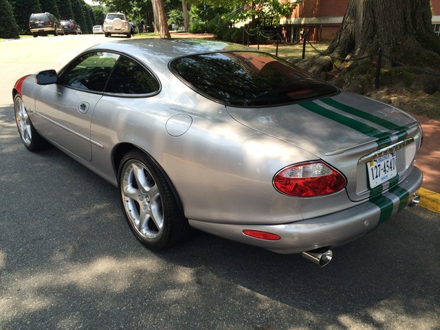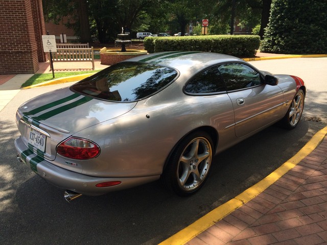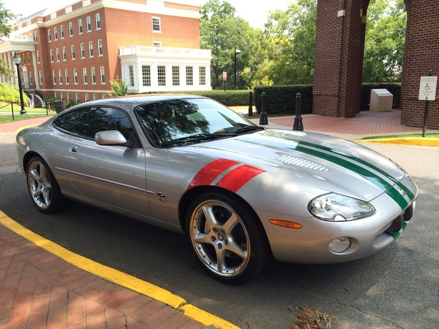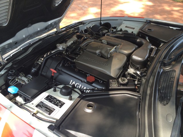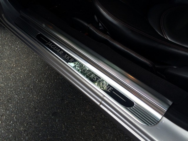 Only 100 Silverstone models were made in Phase I and II (model year 2000 - 2001, 50 Coupe, 50 Convertible. This was Jaguar's celebration to return to F1 racing in 2001. It featured high gloss paint finish, specific badges and tread plates,a high-performance package (with the same engine as the standard XKR, but improved transmission, steering, suspension and brakes), 20-inch Silver BBS wheels and a custom interior (red-stitched black leather and birds-eye maple wood) . All possible factory options were included,and this one has the optional and functioning Navigation system.
