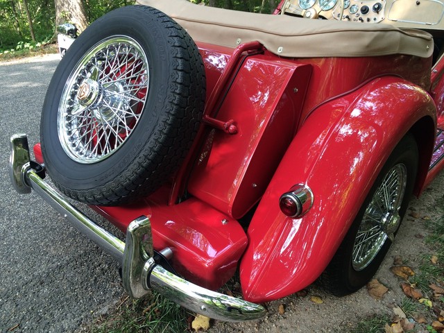 1953 MG TD Red over Tan 4-speed Manual wire chrome knock offs leather