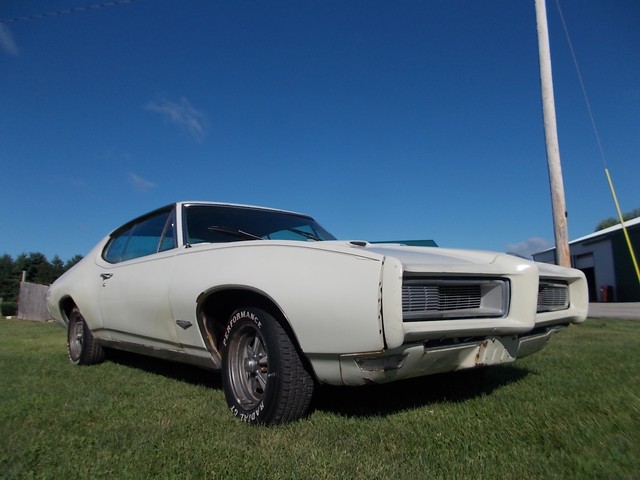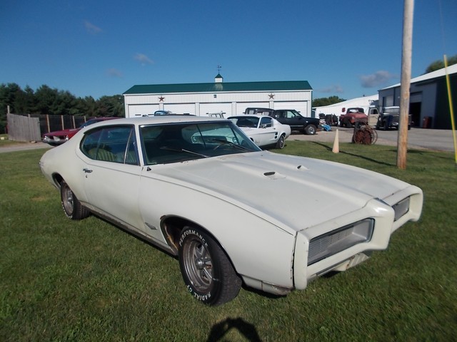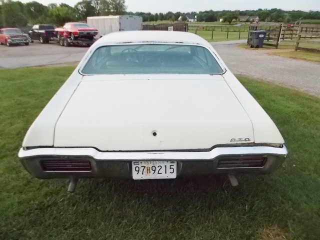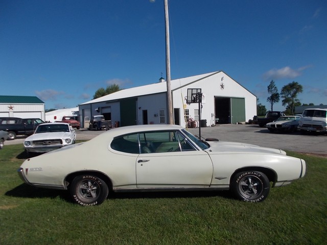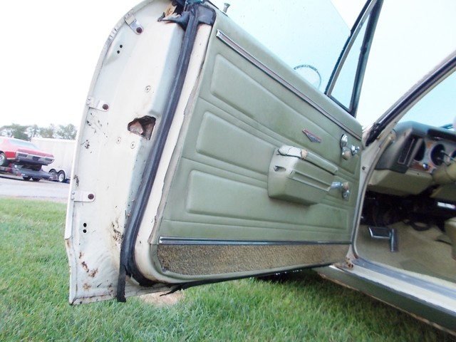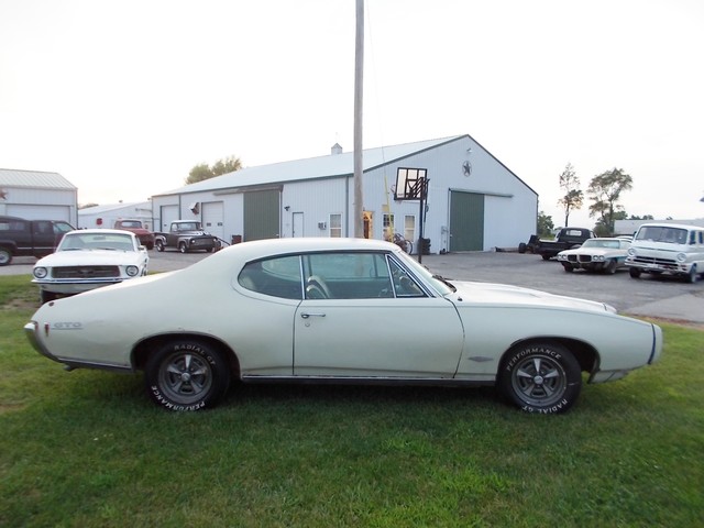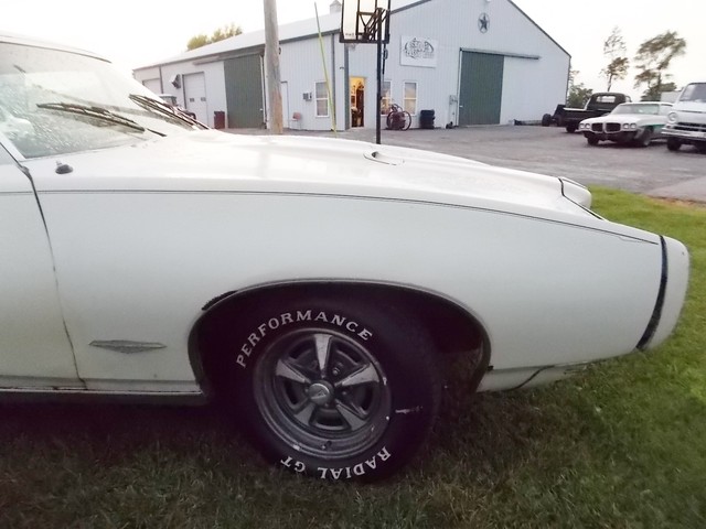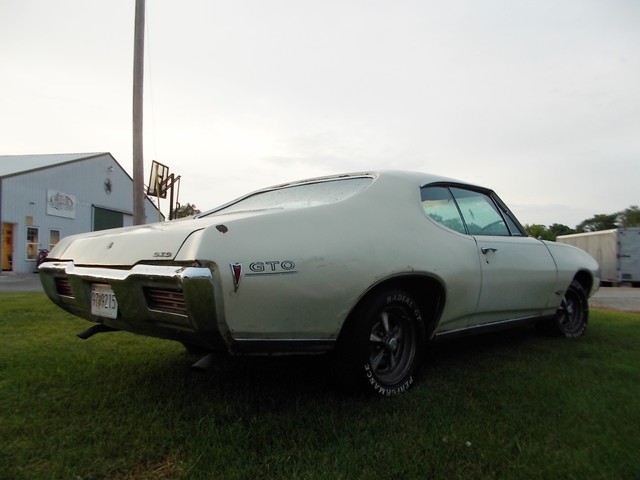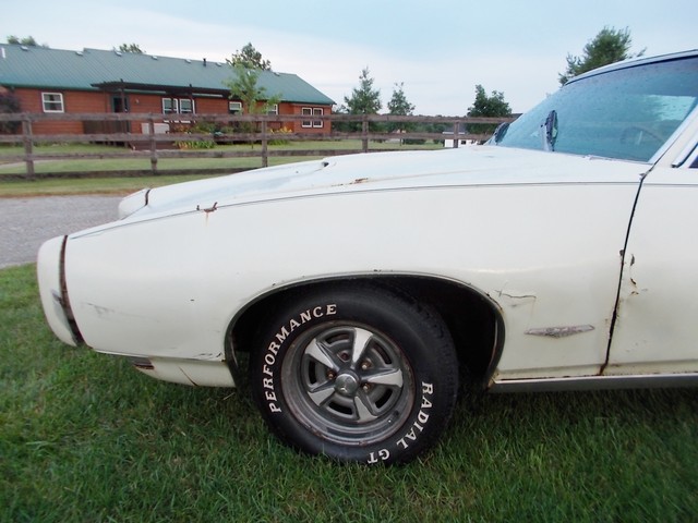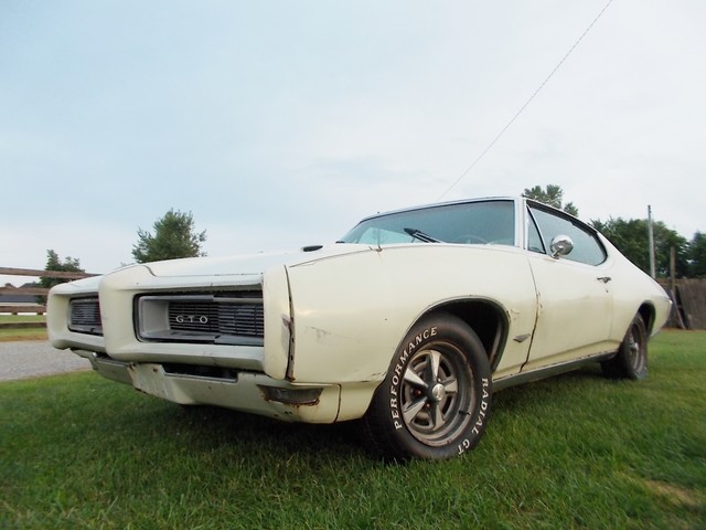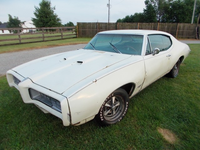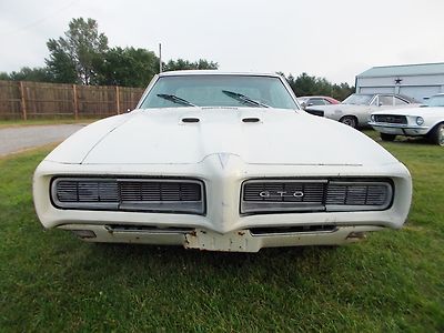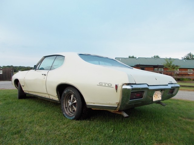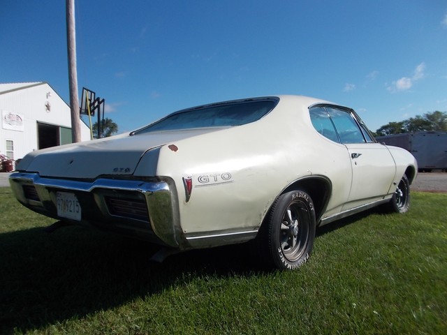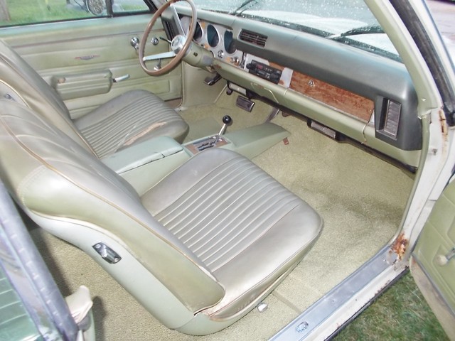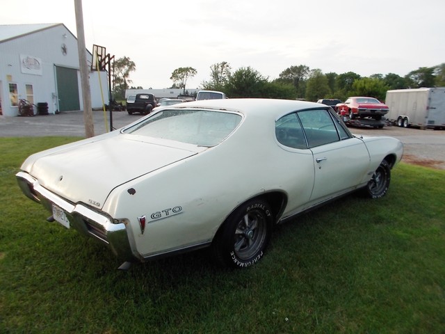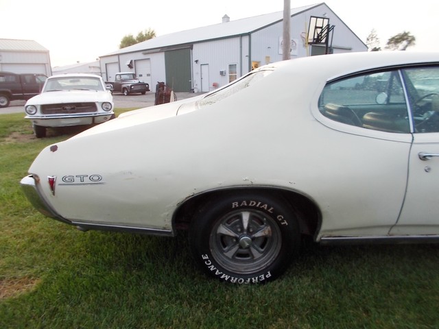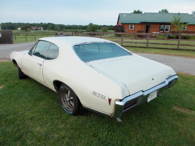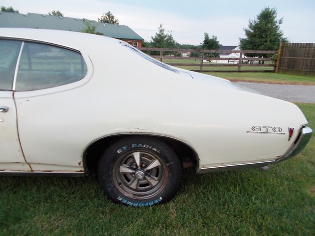 GOOD OL PROJECT GTO. NON MATCHING 400 ENGINE WITH 4 BBL, 3 SPEED AUTO AND 10 BOLT WITH LIKE A 323 POSI. HAS GOOD OPTIONS LIKE AC NOT WORKING, HEADLIGHT DOORS THAT WORK, TAC, TILT WHEEL, REAR DEFOG, DUAL GATE SHIFTER OR HIS AND HERS, BUCKETS, POWER STEER AND POWER DRUM BRAKES. ITS A TANISH OR OFF WHITE COLOR WITH LIME GOLD INTERIOR.