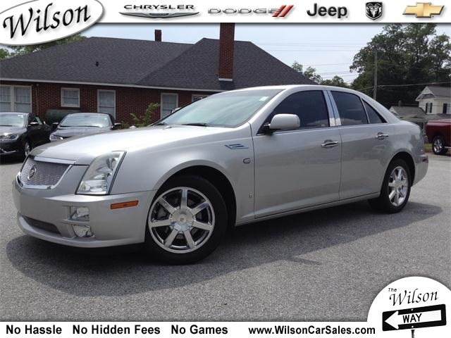 If you wanna buy a car or truck\, we'll sell you a car or truck. No Doc fees\, No add-ons\, No hidden fees! Remember\, we keep it simple\,no games. Cadillac's midsize sport sedan\, the STS\, features a powerful V-6 and a variety of high-tech safety options. The STS competes with the BMW 5 Series\, Lincoln MKS and Hyundai Genesis. New for 2011 The V-8 has been dropped\, and the STS gets free standard scheduled oil changes\, tire rotations\, replacement of engine and cabin air filters\, and multipoint vehicle inspection for four years or 50\,000 miles through Cadillac's Cadillac Premium Care Maintenance program. Exterior The STS' bumper is prominent\, and its grille is dominant. Like it or not\, you have to admit that the elements are in proportion\, from the plunging grille to the stacked headlights and fog lights. The optional Platinum Edition Package adds special badging and 18-inch chrome wheels. Exterior features include: Rocker-panel moldings Small spoiler Chrome door handles Polished-aluminum dual exhaust tips Standard 17-inch alloy wheels\, optional 18-inch alloys Interior The STS can have optional wood trim; real metal trim accents the steering wheel and dashboard. The Platinum Edition augments the cabin with a leather dashboard and a suedelike ceiling. Interior features include: Optional head-up display projects vehicle speed and other selectable readouts on the windshield Standard eight-speaker Bose stereo Optional 15-speaker\, Bose 5.1-channel surround-sound stereo Standard leather seats\, dual-zone climate control Optional heated steering wheel Optional heated and ventilated seats Under the Hood The STS' 3.6-liter V-6 has direct injection and produces 302 horsepower and 272 pounds-feet of torque. It uses a six-speed automatic transmission. An optional performance package includes four-piston calipers with larger brake discs\, among other tweaks. Wilson Chrysler Jeep Dodge Ram Chevrolet located in Winnsboro\, SC 29180; just 15 minutes from Killian Rd\, Columbia Sc. There is only one way to shop and buy your next vehicle\, The Wilson Way! If you are in Columbia\, SC; Blythewood\, SC; Lexington\, SC; West Columbia\, SC; Newberry\, SC; Chapin\, SC; Batesburg\, SC; Leesville\, SC; Rock Hill\, SC; Chester\, SC; Lugoff\, SC; Elgin\, SC; Camden\, SC come shop us at www.WilsonCarSales.com. New car sales and service for Columbia\, SC. Used car sales and service for C...