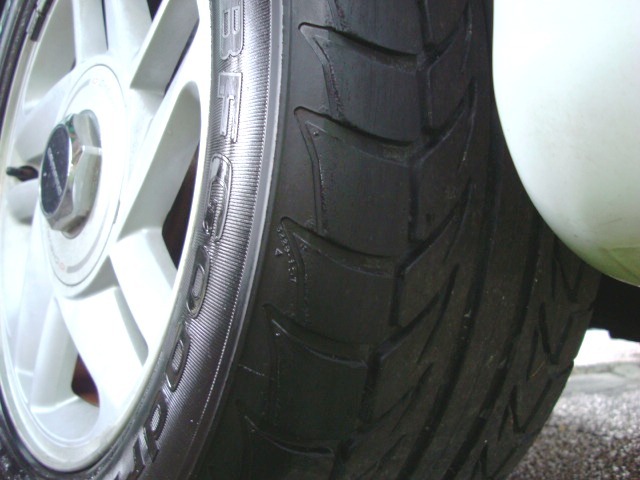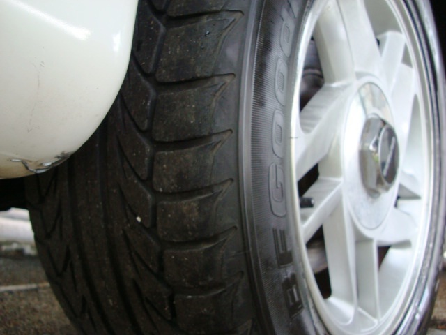 Factory alloy wheels and good rubber all around. Drivers side front tire