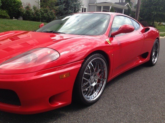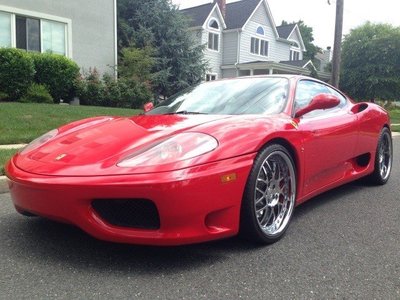 WOWZERS, LOOK AT THIS BEAUTY, 2003 FERRARI 360 MODENA WITH 19,OOO ORIGINAL MILES. BEAUTIFUL CORSO ROSA RED WITH TAN LEATHER INTERIOR, CERTIFIED ACCIDENT FREE CLEAN CARFAX REPORT!! EQUIPPED WITH F1 TRANSMISSION, 3M BRA, CUSTOM RADIO, REAR CHALLENGE GRILL, FACTORY SHIELDS, TUBI EXHAUST AND BEAUTIFUL CUSTOM FIT CHROME FORGED WHEELS WITH SUPER FAT RUBBER, THESE WHEELS COST $8,000.00,( FACTORY STOCK WHEELS ARE AVAILABLE!!, )BOOKS AND TOOLS INCLUDED!!!! CAR RUNS AND LOOKS GREAT AND CAN BE SEEN BY APPOINTMENT IN NEPTUNE CITY NJ, PLEASE CONTACT MICHAEL AT 732-673-5467 WITH ANY QUESTIONS!!! WE WILL ASSIST WITH SHIPPING ARRANGEMENTS IF NEED BE, JUST GIVE US A CALL!!! This is a garage kept vehicle.The engine on this vehicle is running properly.This vehicle has no known defects.The exterior of this vehicle is extra clean.Extra clean interior. Absolutely no rips, odors or abuse.There is approximately 75% of the tire tread remaining.The mileage represented on this vehicle is accurate.There are no noticeable dings on the exterior of this vehicle.This vehicle has a smooth shifting transmission.All power equipment is functioning properly.