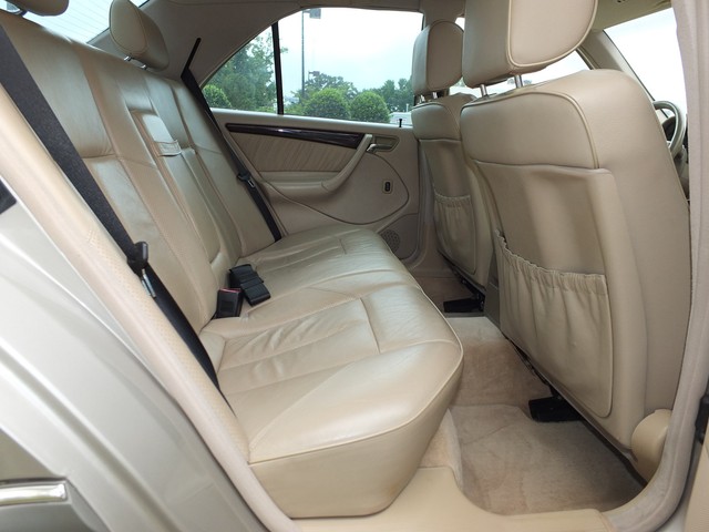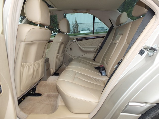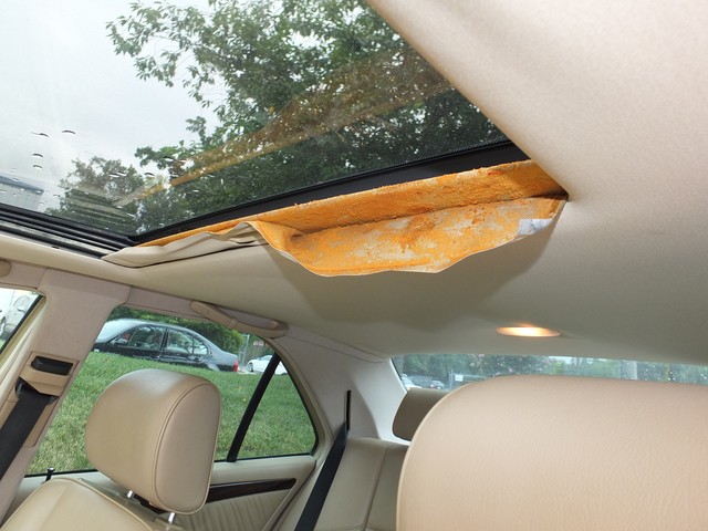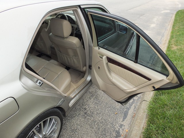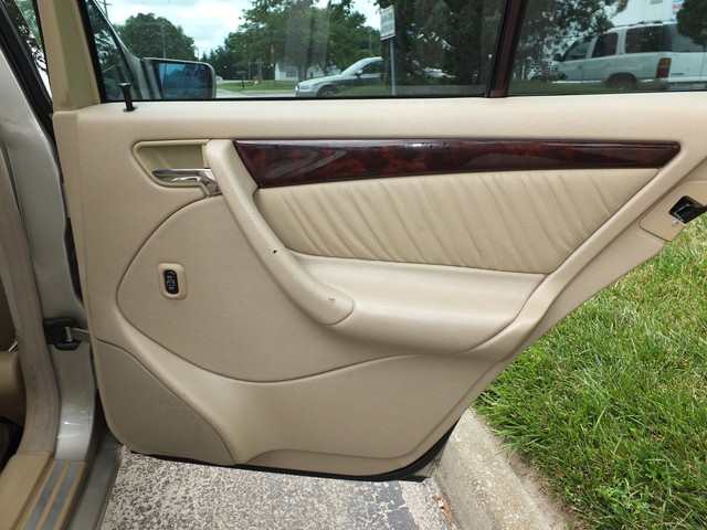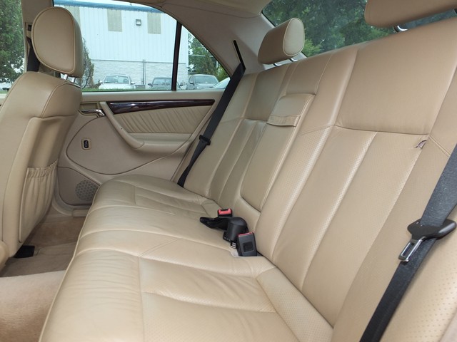 THE INTERIOR OF THIS MERCEDES C230 LOOKS GOOD!  THE ONLY BLEMISHES OF NOTE ARE: SOME DYE WEAR ON THE FRONT SEATS, A CRACK IN THE DRIVER'S DOOR PANEL ARMREST AND SOME HEADLINER MATERIAL ON THE SUNROOF SUNSHADE THAT IS COMING UNGLUED.