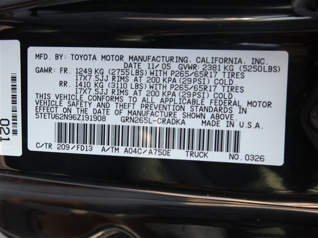 • VIN: 5TETU62N96Z191908