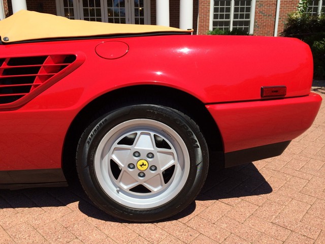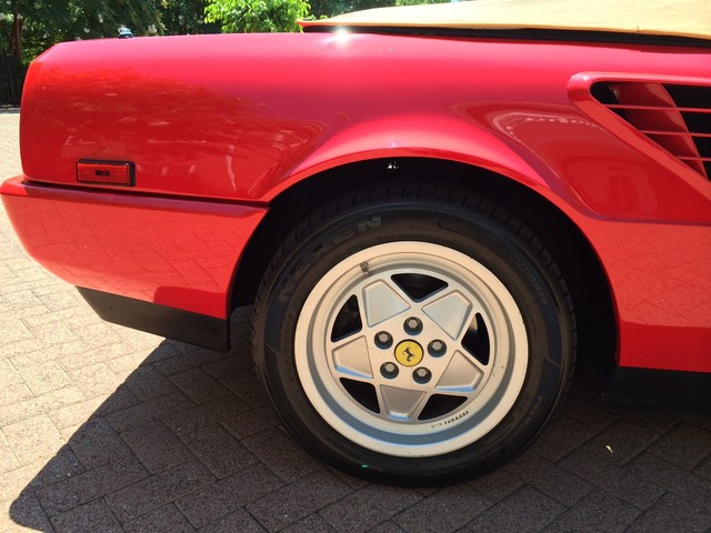 Very little wear on the seats at all, excellent for their age. Well preserved interior throughout. The exterior shows well and is likely a full original color repaint. Scuderia metallic shields stand proudly on the front quater panels. Great driver vehicle ready for many enjoyable miles top up or down!
