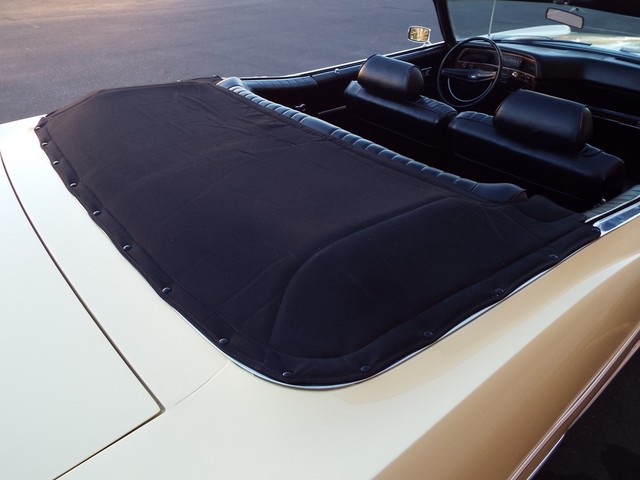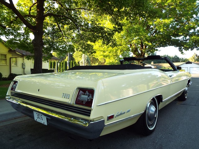 It has what appears to be the VERY STRONG - OPTIONAL - ORIGINAL - Code "Y" - 390 CID V8 Motor in it and is running very well indeed. The motor also still retains the ORIGINAL intake manifold, ORIGINAL exhaust manifolds,  ORIGINAL "Ford" scripted valve covers, ORIGINAL carb and the ORIGINAL air cleaner housing, ETC... . Sounds good too with the factory style exhaust system. The engine is backed by a SMOOTH - Code "U" - C6 three speed automatic transmission that also functions very well and was professionally rebuilt approx 2,000 miles ago. The MOSTLY FACTORY ORIGINAL !! - Code "6" -Black vinyl and faux wood grain accented interior is BEAUTIFUL and is in GREAT shape including a VERY NICE Black vinyl front seat with factory headrests, VERY NICE Black vinyl rear seat, VERY NICE ORIGINAL matching Black vinyl door panels with correct faux wood grain inserts, VERY NICE ORIGINAL Black and faux wood grain accented dash, VERY NICE ORIGINAL Black vinyl dash pad with one small crack, VERY NICE ORIGINAL gauge clusters, good ORIGINAL Galaxie steering wheel, VERY NICE ORIGINAL Black vinyl sunvisors and NICE Black carpeting. All of the black rubber weatherstripping is soft, supple and in GREAT condition. This is one sharp car indeed ! This Galaxie 500 is quite a deal and you will be surprised at the low reserve. This Galaxie 500 drop top has outstanding looks and OUTSTANDING V8 power as well ! It is nicely equipped including factory power steering, power brakes, factory power wipers, working original Philco AM radio, dual chrome remote side view exterior mirrors, original day / night rear view mirror, factory front and rear seat belts, good glass, factory gauge package including a 120 mph speedometer, good heater and defroster, original day / night rear view mirror, cloth power convertible top with a glass rear window and factory back up lights.