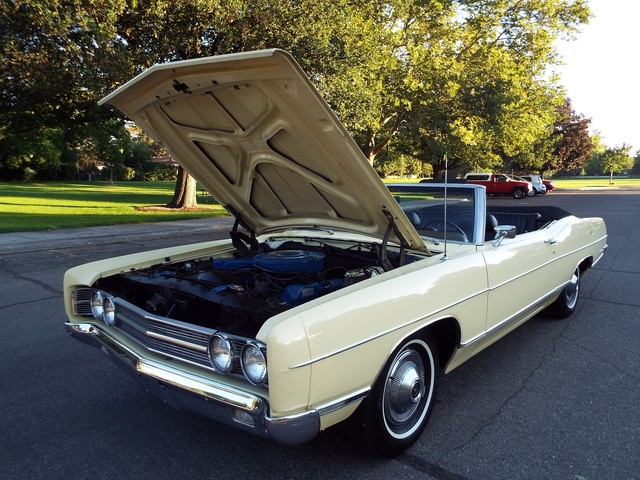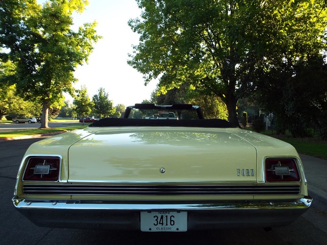 These vehicles have an appreciative group of owners, any of which would be pleased to own this one. The suspension and electrical system on this BEAUTY all seem to be in good working order. This Ford Galaxie 500 Convertible is a good investment opportunity and it is priced right ! This vehicle is in good condition from top to bottom and from front to back. It will not disappoint someone looking for a good example of a sought after and hard to find Classic Galaxie Convertible. If you have been looking but cannot find a nice Galaxie 500 worthy of your hard earned money look NO further because this is the one ! The - Code "W" - Meadowlark Yellow exterior finish on this Galaxie is EYE POPPING BEAUTIFUL showing little to no wear and is still bright and shiny and looks STUNNING as you can clearly see in the picture and video above and THE 100 ADDITIONAL PICTURES BELOW.  Meadowlark Yellow with a Black convertible top and matching Black  interior, could it get any better ?!! All of the ORIGINAL light lenses and reflectors are clear, bright and BEAUTIFUL !! Check out the FACTORY ORIGINAL Galaxie stainless steel wheel covers with good whitewall steel belted radial tires, boy does this combination look outstanding on this car and really retains that "Clean Factory Original" look !! Most all of the ORIGINAL chrome and stainless steel exteior body trim and moldings are in NICE condition including VERY NICE ORIGINAL chrome front and rear bumpers, VERY NICE ORIGINAL badging and a VERY NICE Black cloth power covertible top with the correct glass rear window and matching black cloth convertible top boot cover. The CLEAN - SOLID Trunk also sports a brand new full size steel belted radial spare tire. This car is an outstanding cruiser for your local cruise night or show-n-shine! This vehicle is very presentable with respect to the overall cosmetic impression. I looked underneath and also included photos below. This is a NICE - DRY - SOLID Idaho high mountain desert - western vehicle and it has plenty of good looks to boot !  In my opinion you can't find much nicer ORIGINAL FLOORS than the ones on this BEAUTY !! Please pay close attention to the picture and video above and THE 100 ADDITIONAL PICTURES BELOW and this description as they will answer most if not all of your questions. If you need to speak to me my name is Ross and my telephone number is (208) 866-4055 or you can email if you prefer. As always I tried to get as thorough and in depth with the photographs as possible.