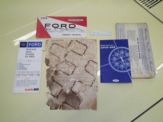 ***  FACTORY ORIGINAL 1969 FORD OWNER'S MANUAL - FACTORY ORIGINAL - ASSEMBLY LINE BUILD SHEET - FACTORY ORIGINAL 1969 FORD WARRANTY FACTS BOOKLET - FACTORY ORIGINAL FORD "SAFER RIDE" BOOKLET - FACTORY ORIGINAL COWL MOUNTED DATA PLATE - FACTORY ORIGINAL DRIVER'S DOOR MOUNTED DATA PLATE - FACTORY ORIGINAL DASH MOUNTED VIN TAG - FACTORY ORIGINAL TRUNK LID MOUNTED JACKING INSTRUCTIONS STICKER !!  ***