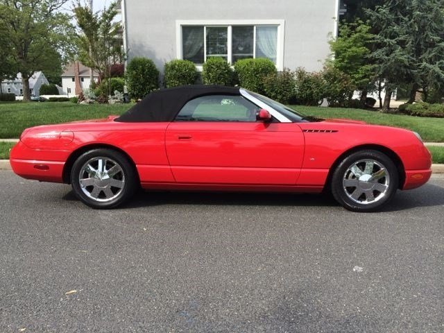 Beautiful cherry red on redFord Thunderbird! Classic retro look that will never go out of style! This ONE OWNER vehicle is packed with a 4.0 liter, 8 cylinder engine and 280 hp! With the choice of a hardtop and a soft top convertible. Gorgeous Gorgeous vehicle!! -- INSTALLED FEATURES: Front air conditioning, Front air conditioning zones: dual, Front air conditioning: automatic climate control, Shift knob trim: leather, Steering wheel trim: leather, Center Console, Cruise control, Multi-function remote: keyless entry, Power steering, Remote trunk release, Steering wheel mounted controls: audio, Steering wheel: tilt and telescopic, ABS: 4-wheel, Power, Traction control, CD changer, Clock, MP3 player: CD MP3 Playback, Premium Brand, Radio: AM/FM, Tachometer, Trip computer, Exterior entry lights, Headlights: Auto on/off, 17 Inch Wheels, Convertible roof: power, Front wipers: intermittent, Power windows, Privacy glass, Rear defogger, Anti-theft alarm system, Exterior mirrors: power, Front airbags: dual, Power door locks, Side airbags: front, Front seat type: bucket, Power adjustments, Upholstery: leather