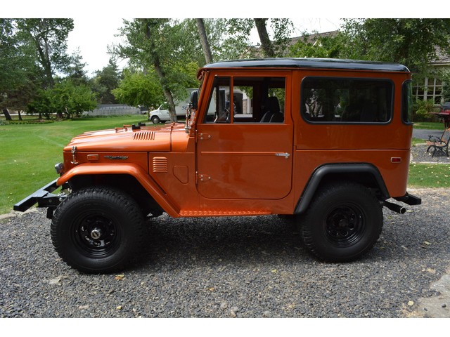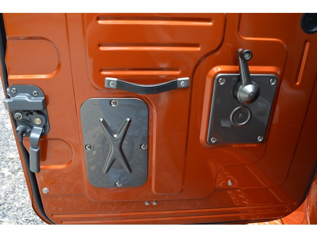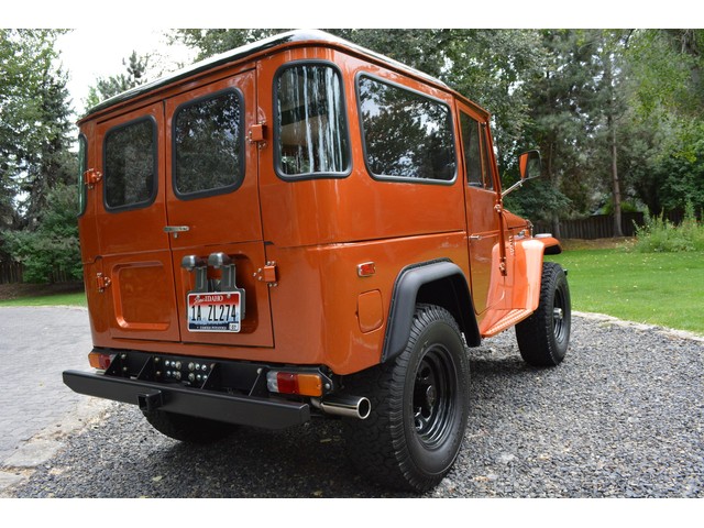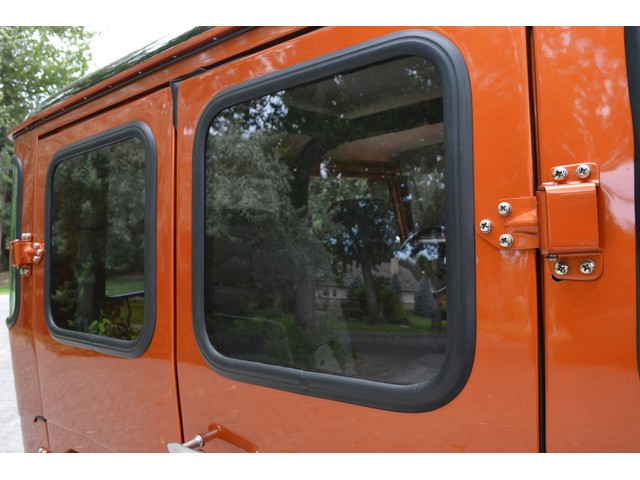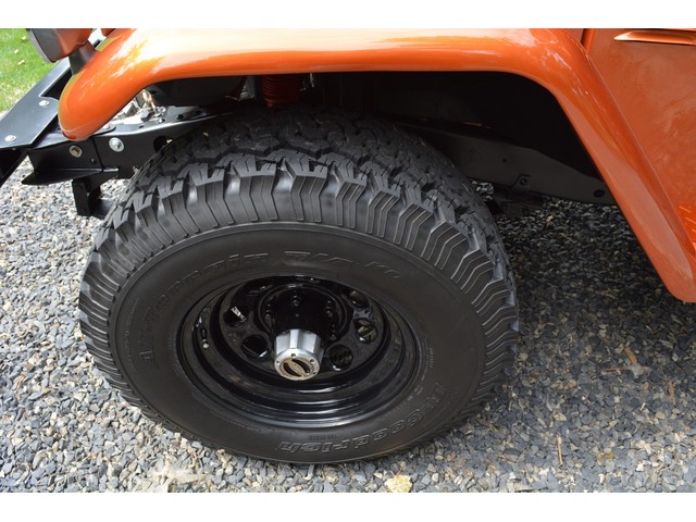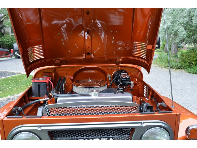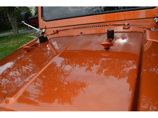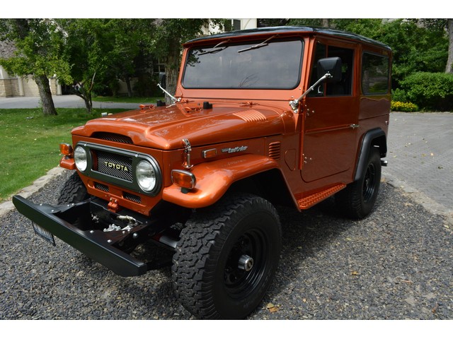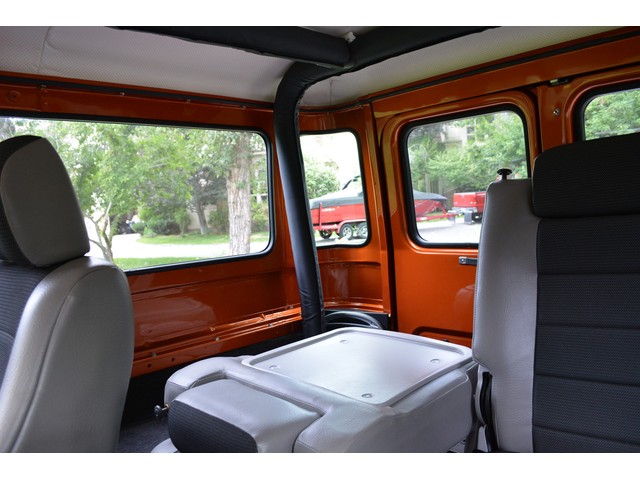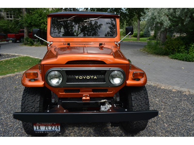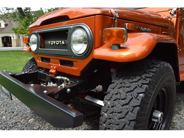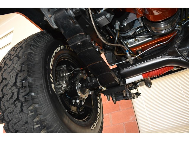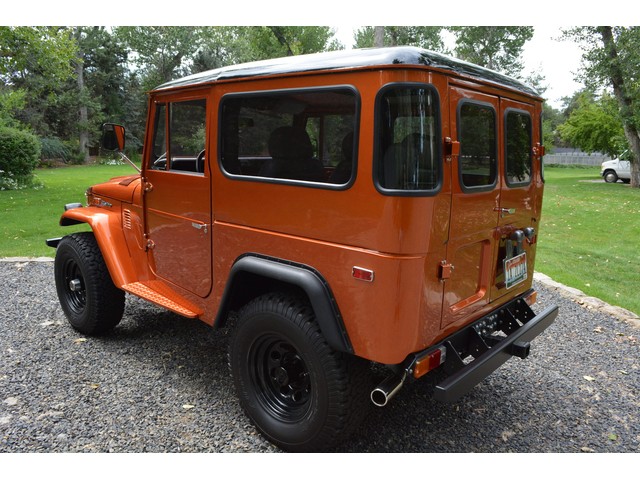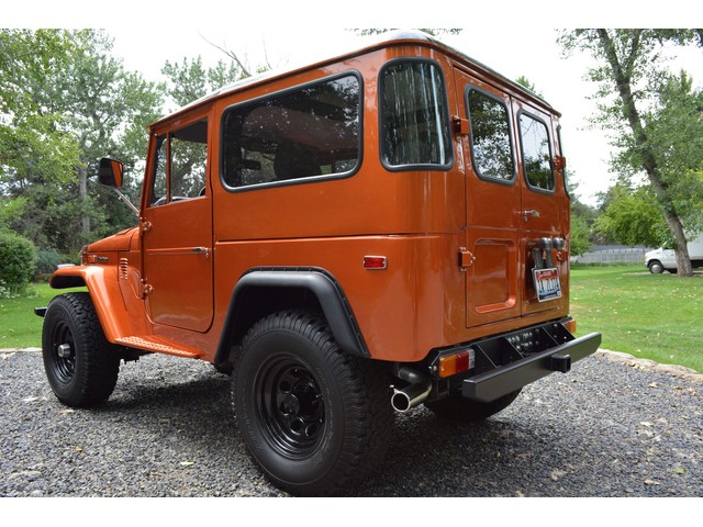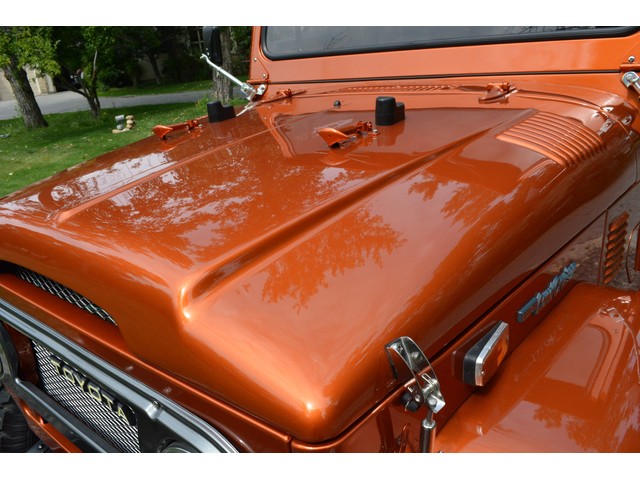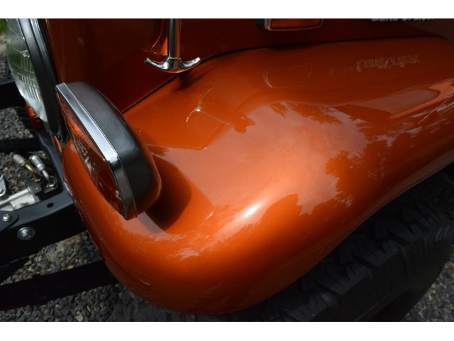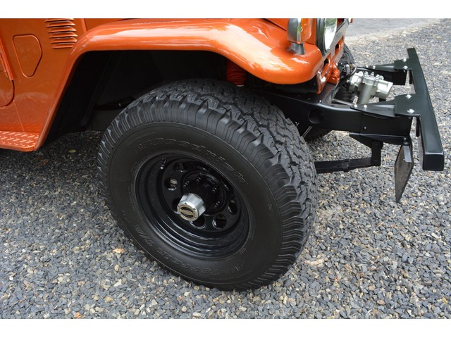 This Jeep is a great investment opportunity and it is priced right! This vehicle is in SHOW condition from top to bottom and from front to back. It will not disappoint someone looking for a clean example of a hard to find Custom show FJ40. If you have been looking but cannot find a nice FJ40 worthy of your hard earned money look NO further because this is the one! The Custom Chrysler “Copperhead” metallic finish on this vehicle is SHOW-WINNING BEAUTIFUL and looks GREAT as you can see in the pictures above and below! The undercarriage is undercoated, primer and painted in critical areas to prevent rust. The new custom front bumper is nice as is the custom rear bumper and hitch. Check out the NICE new Black steel wheels and Warn locking hubs with New L285 75r 16 BF Goodrich A/T steel-belted radial tires boy does this combination look OUTSTANDING on this Jeep!! The rear doors converted from the 3 door unit stock on 1974 Toyotas to an ambulance door configuration used on later models. It also has a fixed tailgate that can be installed to replace the ambulance doors for use when the top is removed. This vehicle is in new mechanical condition and it runs and drives very well. The vehicle is solid with respect to the overall mechanical condition as well as the overall cosmetic impression. I looked underneath and also included photos below. You could eat off the undercarriage.
