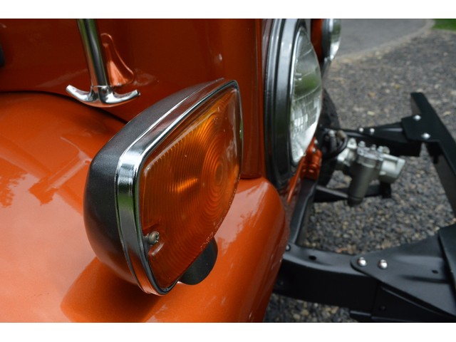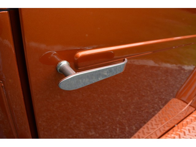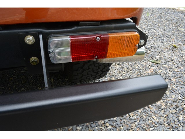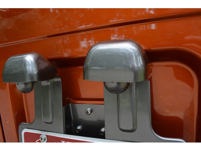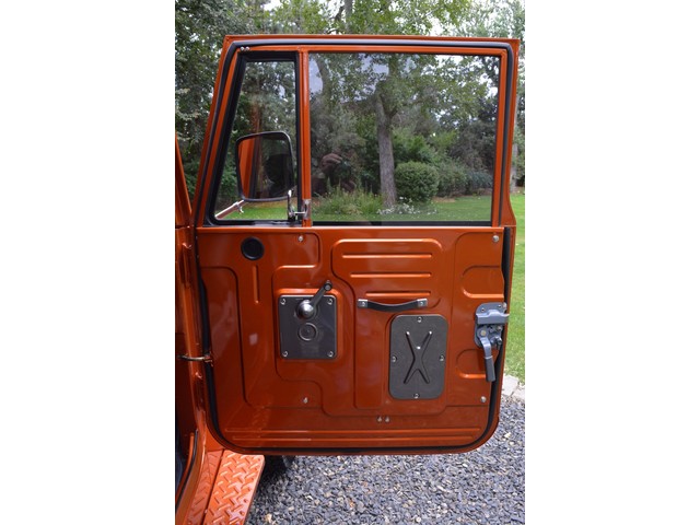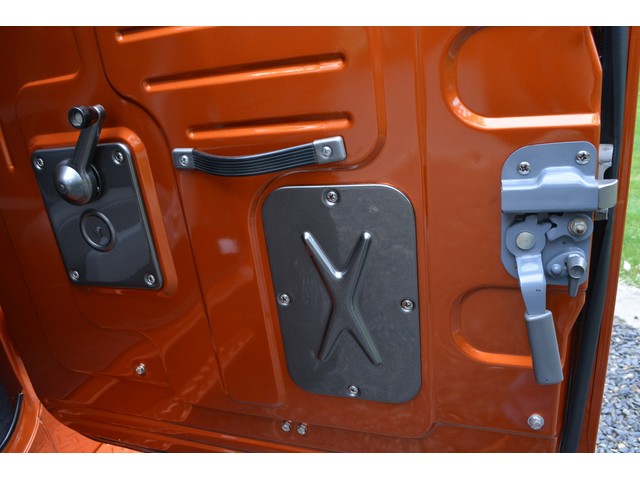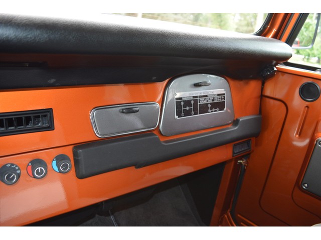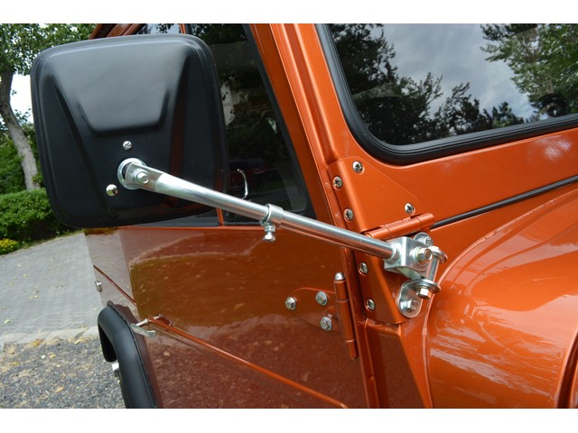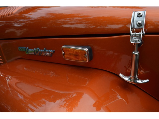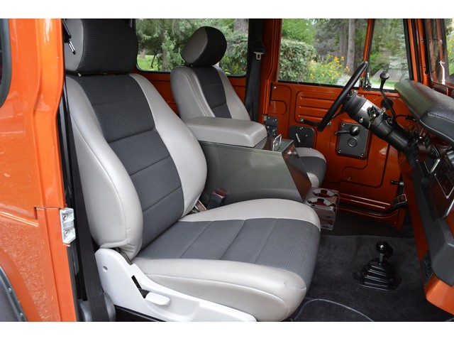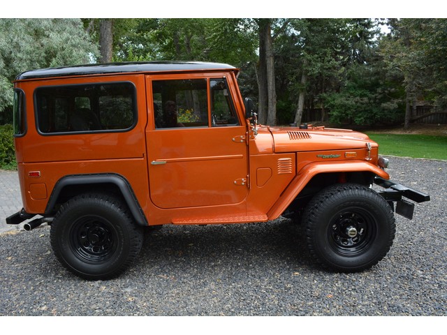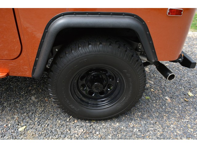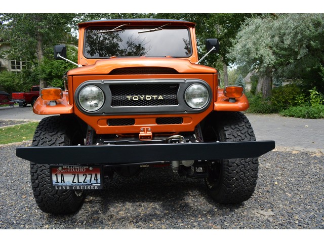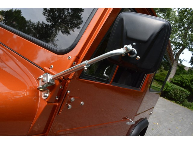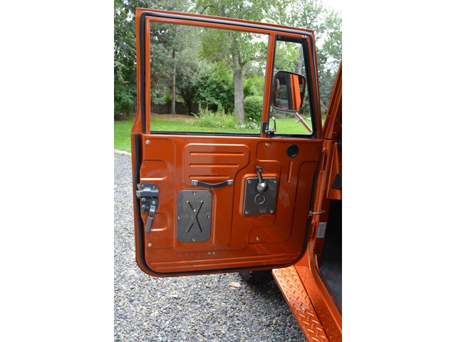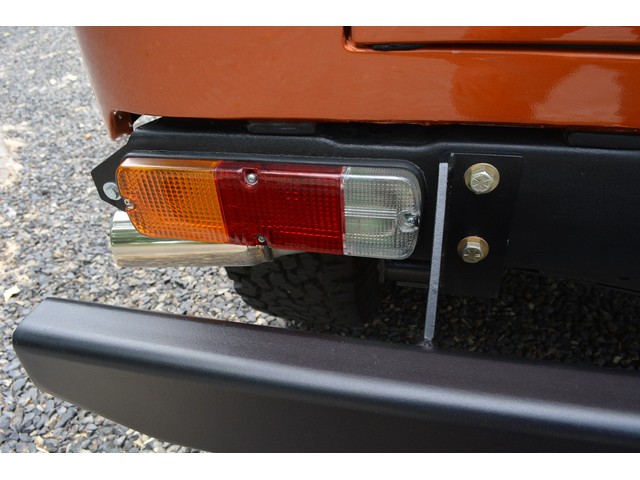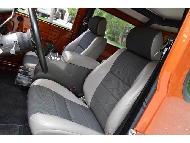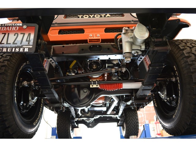 This Jeep is a great investment opportunity and it is priced right! This vehicle is in SHOW condition from top to bottom and from front to back. It will not disappoint someone looking for a clean example of a hard to find Custom show FJ40. If you have been looking but cannot find a nice FJ40 worthy of your hard earned money look NO further because this is the one! The Custom Chrysler “Copperhead” metallic finish on this vehicle is SHOW-WINNING BEAUTIFUL and looks GREAT as you can see in the pictures above and below! The undercarriage is undercoated, primer and painted in critical areas to prevent rust. The new custom front bumper is nice as is the custom rear bumper and hitch. Check out the NICE new Black steel wheels and Warn locking hubs with New L285 75r 16 BF Goodrich A/T steel-belted radial tires boy does this combination look OUTSTANDING on this Jeep!! The rear doors converted from the 3 door unit stock on 1974 Toyotas to an ambulance door configuration used on later models. It also has a fixed tailgate that can be installed to replace the ambulance doors for use when the top is removed. This vehicle is in new mechanical condition and it runs and drives very well. The vehicle is solid with respect to the overall mechanical condition as well as the overall cosmetic impression. I looked underneath and also included photos below. You could eat off the undercarriage.
