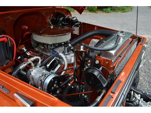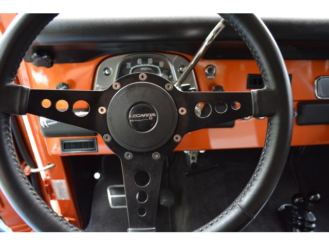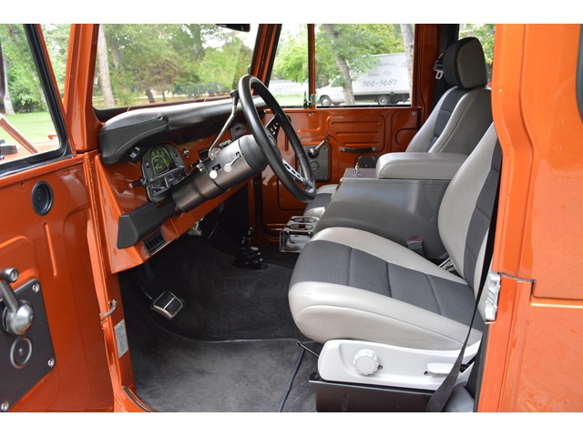 This is a DRY - SOLID – Western Jeep all its life. This 1974 Toyota FJ40 Land Cruiser has new 350/290 HP Deluxe GM Crate Engine that has four-bolt mains. It also includes a smooth hydraulic camshaft and durable aluminum pistons that deliver an 8.0:1 compression ratio. in it, and it is running VERY well. I has all the goodies like Edelbrock 4-barrel carb, ceramic coated headders and new 100 AMP alternator. Sounds good too with the dual Flowmaster exhaust system. The engine is backed by a new 700R-4 four speed overdrive automatic transmission built to handle 400+ HP, the Advanced Adapters transfer case for the 700R that was rated for 450 HP along with their shift kit, with Hi / Lo 4WD that is also new. The all New Custom interior is VERY NICE and has all the modern amenities you would expect with a High-end build like this one, Nice Custom rear bucket seats that fold flat and tumble up out of the way like the newest SUV seats do, NICE original dash painted to match the rest of the body, NICE new custom dash pad, NICE original gauge cluster all working, NICE new sun visors and headliner, A sound deadening headliner was installed with 3/8 foam insulation pad added to the headliner for added sound control, NICE original door panels all restored and a nice Lecarra Leather wrapped steering wheel, nice new custom carpet and floor mats. The FJ40 an awesome Pioneer Super-tuner AM/FM/CD/MP3/USB digital stereo with IPOD hook-up and remote control and it sounds Awesome with the Pioneer 6X9 3-way speaker system. This Jeep is nicely equipped including upgraded Advanced Adapters power steering kit with a Saginaw steering box. Converted to front disk brakes using FJ 60 outers with rebuilt calipers, new wheels bearings and rotors, braided stainless steel brake lines, locking hubs, and Birfield joints , restored factory gauge package, original restored dual folding exterior mirrors, Moved the firewall concave ahead 2 inches to accommodate the installation of the Vintage air conditioning unit under the dash, good heater and defroster and custom 3- Point seat belts. This FJ40 is a great running and wonderful looking rig, it drives Amazing, if you have ever driven a stock FJ40 you will appreciate what an engineering marvel it is to have one that drives like this one on and off road and on the Freeway. The springs were re-arched to give it the perfect stance, all the suspension components are new and the Skyjacker Hydro shocks that are designed to adjust automatically to any on or off-road condition. They feature hydraulic-action, twin-tube construction and multi-stage, velocity-sensitive valving. The original gas tank under the passenger seat was removed and replaced with a 22 gallon tank mounted behind the rear wheels with a 16 gauge skid plate. This 1974 Toyota FJ40 Land Cruiser has sharp looks and TONS of Power as well! These vehicles have an appreciative group of owners any of which would be pleased to own this one. EVERYTHING ON THIS FJ40 IS NEW OR REBUILT.