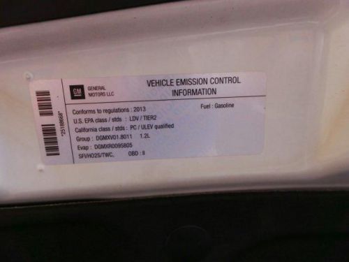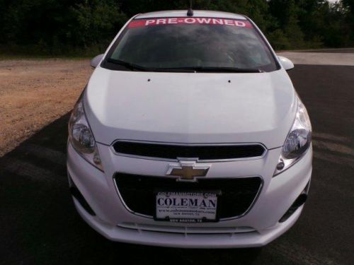 Grab a steal on this 2013 Chevrolet Spark LT before someone else snatches it. It is well equipped with the following options: Driver foot rest, left side, Wheels, 15" (38.1 cm) 5-split spoke Silver-painted aluminum, Headlamps, halogen with Daytime Running Lamps, Theft-deterrent system, content theft alarm, Console, rear, center with storage tray, Air bags, thorax side-impact seat-mounted, side-front and rear outboard seating positions (Always use safety belts and child restraints. Children are safer when properly secured in a rear seat in the appropriate child restraint. See the Owners Manual for more information.), Storage, driver IP coin tray, Oil life monitoring system, Brake/transmission shift interlock, Safety belts, 3-point, all positions, front height adjustable. Spacious but easy to maneuver, its low maintenance Automatic transmission and its dependable Gas I4 1.2L/73 engine have lots of soul for a value price. You've done your research, so stop by Coleman Motors Inc. at 510 Addison Street, new Boston, TX 75570 soon to drive home in your new car!