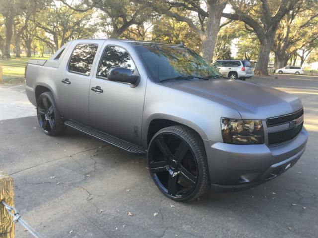 2007 CUSTOM AVALANCHE THIS IS ONE OF A KIND CHEVROLET AVALANCHE FULLY LOADED LTZ PACKAGE. ORIGINAL COLOR OF THE TRUCK IS BLACK, TRUCK HAS A MATTE CHARCOAL 3M WRAP DONE BY WORLDFAMOUS KUSTOM KINGS. THE TRUCK IS FLAWLESS AND NECK BREAKING FOR SURE, SITTING ON 28 INCH TEXAS EDITION WHEELS, FLAWLESS BLACK LEATHER AND CARPET, NON SMOKER CAR, SECOND OWNER THE FIRST WAS MY GRANDFATHER, CUSTOM KICKER SET UP WITH 2 L7 15 INCH SUBWOOFERS, AUDIO CONTROL LC6 SOUND PROCESSOR, 1500.1 ROCKFORD FOSGATE DIGITAL AMPLIFIER. REAR ENTERTAINMENT CONSOLE FOR THE KIDS WITH WIRELESS HEADPHONES. THERE IS A SMALL CRACK ON THE DASHBOARD AND ALL GM PRODUCTS FROM 2007 TO 2011 HAVE THE SAME HARD PLASTIC DASH COVER SHIELD. SMOKED OEM HEADLIGHTS AND TAIL LIGHTS, ESCALADE ESCALADE EXT CLADDING. TOWHITCH FOR PULLING THE BOAT. IM SURE THERE IS A FEW THINGS THAT IM FORGETTING BUT IF YOURE INTERESTED PLEASE CONTACT ME