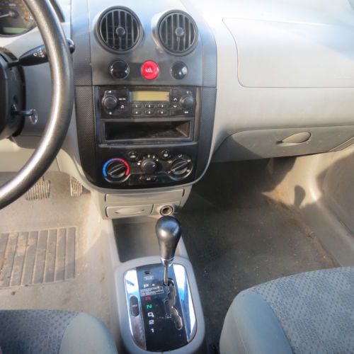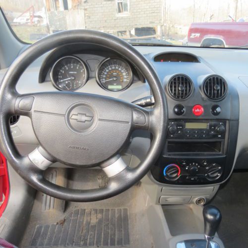 2005 chevy aveo automatic 4 door hatchback has 131766 miles on it.the car has dents on hood ,roof, and most body panels and the front bumper is broke but you can get a new one for less than 100.00 here on ebay .there is one spot of rust on right rear quarter panel. car runs good and has ice cold ac gets 30+ mpg im sure I may be forgetting things so ask any questions before bidding.the car is listed on other web sites and locally for sale so reserve the right to end auction at any time . thanks