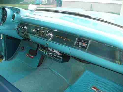 Exceptional survivor that has received a few sections of professional repaint. Very loaded for a sedan, Power Pak, Powerglide, power steering, power brakes, trunk trim, spinners, bumper guards, front bumper end cushions, door handle guards, vanity mirror, day-night mirror, skirts (not shown but ine excellent condition) wide white radials with minimal wear, etc.