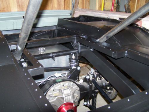 Suspension: Art Morrison rear 4 link clip with coil overs, tubular A arms gas shocks on the front with uni-steer hydraulic rack and pinion with custom springs. Frame was beefed up with cross members and driveline loops. Also, skid bars attached to frame to prevent headers bottoming out. The entire car weight is 4200 Ibs.