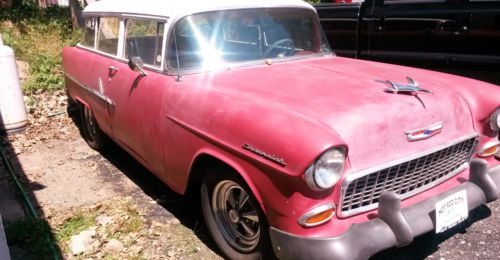 1955 Chevy Bel Air Engine runs beautiful. Body and interior needs restoration. All the makings for an amazing restoration project! On Aug-28-14 at 20:52:28 PDT, seller added the following information: JUST WANT TO SAY THAT THE PICS OF THE MOTOR IN THIS CAR I WISH CAME OUT BETTER BECAUSE THE A/C IS BRAND NEW AND MOST OF THINGS YOU CANT SEE VERY GOOD LIKE STEERING BOX/AND MASTER CIN/BRAKE BOOSTER/ALTERNATER AND FAN PULLYS ARE ALL CHOME IM GOING TO SEE IF I CAN GET BETTER PICS BECAUSE I DIDNT NO HOW MUCH YOU CANT SEE WITH THE PICS THAT MY GIRL POSTED. SO I WILL BE PUTTING MORE IN BY SAT. On Aug-29-14 at 18:13:49 PDT, seller added the following information: this is a car that you can jump in and drive any day you like and it get a lot of looks even the way it looks right now.the out side is just about ready for paint the inside needs to be done up like headliner and front seat and back seat are what needs to be done and that for the new owner to do the way he wants it to look+++++ On Aug-31-14 at 19:29:01 PDT, seller added the following information: