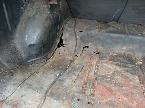 - Floor Panels - Hole in forward, driver side area of trunk, and a hole under rear bench seat on passenger side. No other holes. Front driver and passenger floor has been repaired.