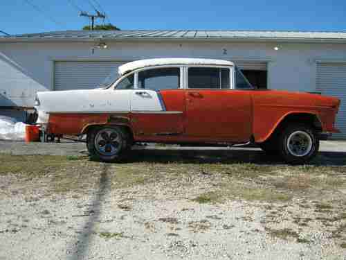 For sale is a 1955 Chevy, rolling chassis. This venicle has been stored inside since it's previous owner stopped drag racing in the late 90's. From the pictures I think you will see that it is in remarkable shape. The metal has been repaired by bondo in several places, but it appears to be all origional. It has some racing equipment still installed.