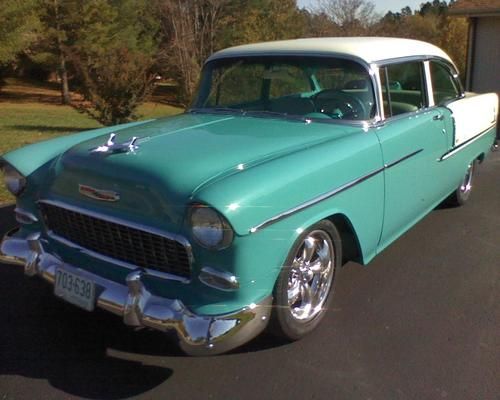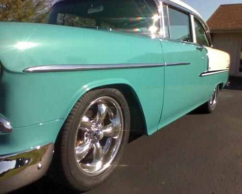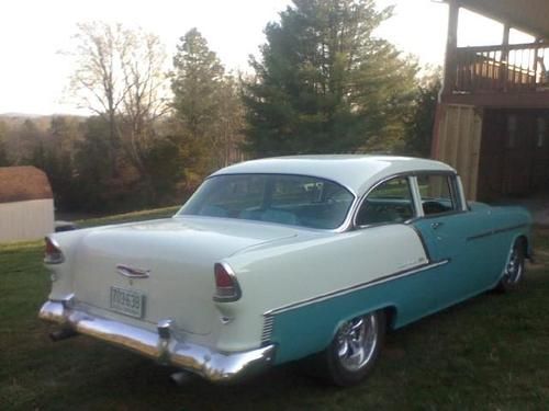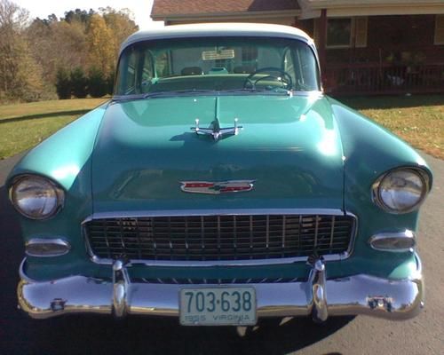 1955 chevy belair 2 door sedan 98% original gm sheet metal.very nice show quality car.frame off restored.only 2600 miles since restoration.car had 86000 original miles before restoration.done in original colors regal turquise poly and inda ivory bc/cc.original floor pans and all braces.orginal front fenders and headlight caps are also original.no rust ever in floors or trunk areas.super straight.very nice body lines. 350/330 vortec gm crate motor,tci 700r4 trans,9'' ford rear 355 posi,vintage heat and air,cjs tilt colum,auto meter guages,serpentine belt and pullies,lots of chorme, everything has been gone thru,delphi 500 steering,sway bar,dropped spindles.disc brakes,am/fm cd in dash,owner built with 30 plus years on tri 5 chevy restorations.way to much to list.call allen with any questions 540-493-6759 this car is done the right way no disapointments here.