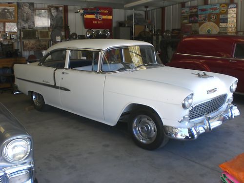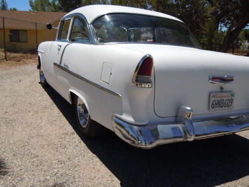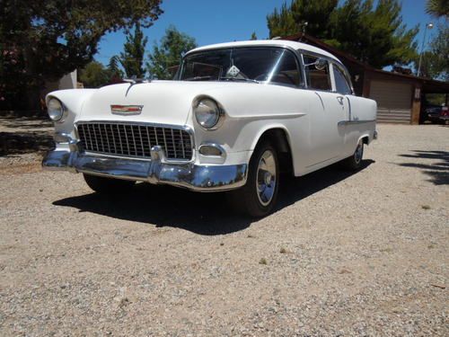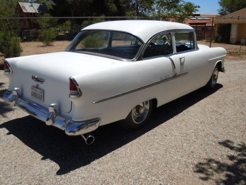 1955 Chevy Belaire 2 Dr. Coupe. Turbo powered 350 V-8, 4-spd. trans. Body almost ready for paint. Original colors: 682-5Z1 (white over Dark Blue) 3" exhaust. NO RUST. Car is located in Lancaster, Ca., 90 miles north of L.A. Buyer to pay $500.00 deposit via PayPal upon winning bid. Balance to be paid within 10 days via Wire transfer or cash. No Certified checks or money orders. Bud (661) 747-4395