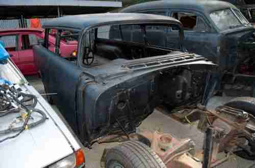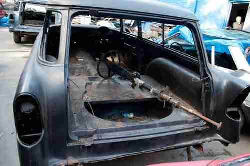 1956 Chevy 2dr Handyman body has been removed and sealed. Front clip done with disc brakes. No interior, motor, trans, or glass. minor body work needed. Bill of sale on this. Buyer pays shipping and Handling.