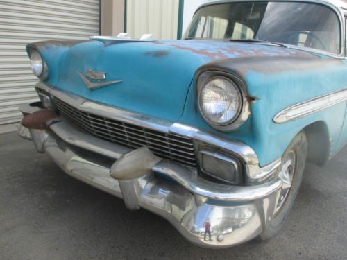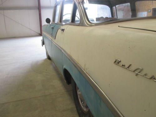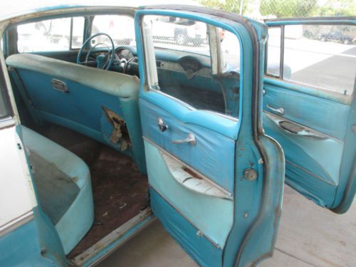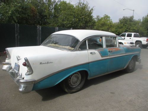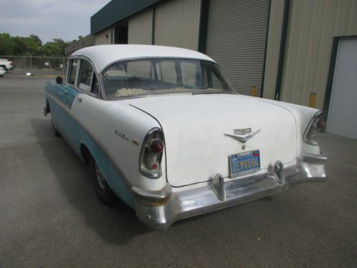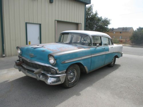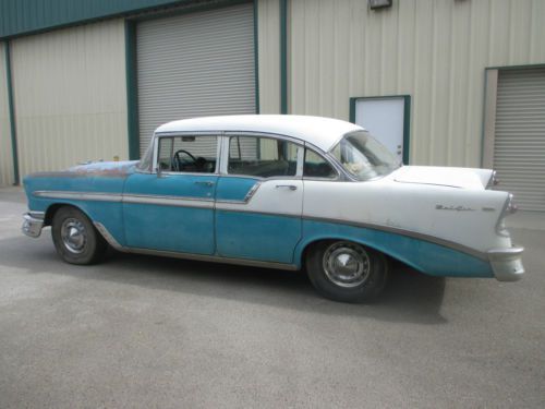 Here we have an un-restored 1956 4 door Chevy Bel Air, equipped with a 265 V8, manual 3-speed on the column.
