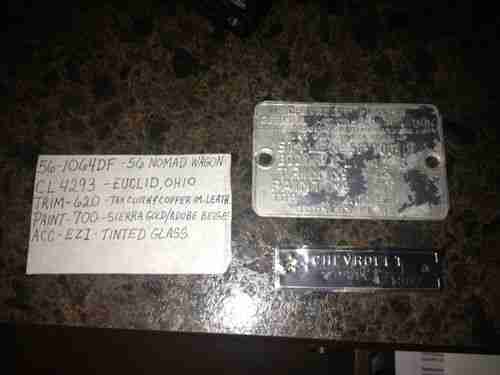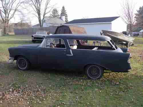 1956 Chevy Nomad. No Title. Didn't get one when I bought it and I don't know what happened to it. Sells with bill of sale only. I thought I would be able to get one but unfortunately Ohio is a royal pain to try to get a title for. I do have the trim tag and VIN tag. The car runs and moves and stops. Small block Chevy engine with a automatic transmission. Engine appears to be a 1966 327 according to the date code. Engine has a Weind intake on it and appears to be an older engine because it has the cartridge oil filter on it. I was told it has a 10 bolt posie track rear end. I was told this is a original Air Cond. Car, with the fire wall unit missing. Interrior trim is all there, tailgate hardware,side body moldings are complete except for one of the paint dividers, The lift gate is in very good shape and I have the glass for it. Original seats that have been recovered at some point. Rear seat needs rebuilt and is complete. All of the glass is there. Missing tail gate bars except for the center bar with the handle and the button assembly. Headliner bows included. The body is primer Black and with typical bondo repair to the rockers. The Quarters and Tailgate are very solid. Rear bottom of front fenders probably have some mud. Bottom of drivers door has some bondo. Passenger door has already had all rust cut out and patch panels installed, just need finished. Front fenders above headlights have some bondo, not sure how much. Has some bondo around the rear hatch mounts. The Floors have rust holes in ths sheet metal but braces look pretty solid. Frame looks very good. Spare tire well has holes but have an extra solid one that goes with the car. Runs, Moves and Stops. No, you cannot drive it home, must be trailered or I can deliver for extra fee. Any questions Please email, call, or text 937-215-5613. I am also looking for a 30's or 40's roadster or hot rod.