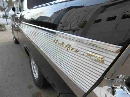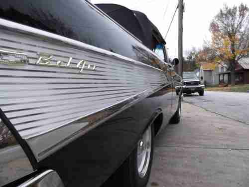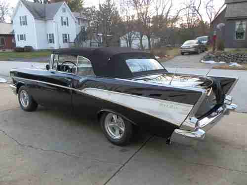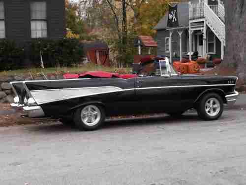 This 1957 Bel Air convertible has a high gloss show quality black exterior finish, restored chrome, stainless, bright work, grille, headlight and tail light bezels, re chromed window glass channels and quarter windows as well. New brushed aluminum applique, side trim, emblems. complete new set of tinted glass, show quality front and rear bumpers. All the floor pans a re new and have a high gloss finish. A piece of GM history, all restored and ready to go! A turn key crate motor has everything you need. A definite head turner and lots of fun...it's better in a classic!