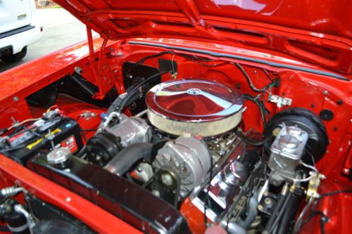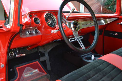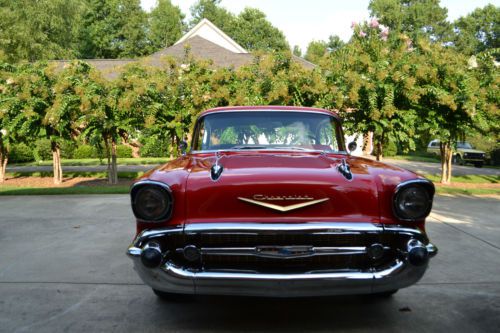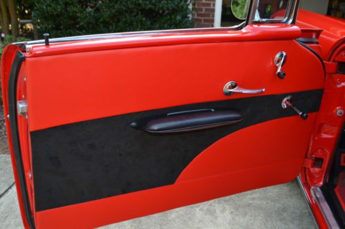 -- Torch red exterior with black interior. -- ALL NEW: paint, exterior and interior chrome, stainless trim, rubber, glass, wiring, etc. NO EXPENSE SPARED on replacing / restoring / updating parts on this car. -- Built-to-order 350ci / 325hp engine. -- TH 350 transmission (2500 stall converter). -- Electronic ignition. -- ALL NEW front suspension with late-model power steering conversion. -- Ididit steering column, with tilt wheel. -- Front disc brakes. -- High capacity radiator with electric fan. -- EVERY MECHANICAL PART on this car either new or restored. -- Totally restored seats (springs, frames, foam, etc.). NOT just new covers. -- Leather-wrapped Corvette steering wheel. -- Hidden audio system (radio and multi-disc CD player). -- Custom trunk treatment. -- ICE COLD A/C. -- New 17" American Torque Thrust II polished wheels...LESS THAN 10 MILES ON WHEELS. -- 215 / 55 / 17R Michelin tires. No expense was spared on restoring this car. Body was taken off frame and restored by noted Atlanta area professional restoration shop. Absolutely stunning paint and body work. Gaps are better than new. Everything works like it should. If you've wanted to own the perfect '57, this is your chance. The owner has other vehicles on eBay now, as he is trying to thin an impressive classic car collection. NO TRADES will be considered. If you want to see the car before bidding, contact me through "contact seller" through eBay. Car located 1 mile off I-75 exit 267 in Marietta, GA. RESERVE WILL NOT BE DISCLOSED. I have sold cars, trucks, boats, tractor, trailers, etc., on eBay since 1998. Check my feedback and bid with confidence. I will assist with shipping once payment is made. Don't miss out -- if you've dreamed of owning "the hot one," this is your chance. Good luck. |
