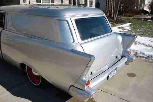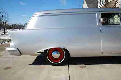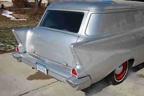 Custom 1957 Chevrolet Sedan Delivery. Body is very nice and shows very well with beautiful silver metallic PPG base / clear coat. Billet grille, LED tail lights, custom head lights and tasteful mild customizing. New items include steel wheels and tires, brakes-power front disc, exhaust and suspension parts. Interior has bucket seats, floor shifter, custom dash, tweed covered rear floor area and aluminum side panels, no head liner. Runs and drives great at all speeds with no smoke of any kind. Very nice mild 350 engine with automatic transmission. Rock solid frame and floors with no under coating to hide poor repairs. Very clean and well detailed under hood, engine and core support area. I have driven this car at 70 mph for two hours straight with no issues, it is not a 100 point trailer queen, but a very nice local car show and cruise night ready vehicle. Pleas ask any and all questions before bidding as all sales are final. Vehicle is open for inspection any time during auction. bidders with less than 10 in feedback please contact me first or I will remove your bids.