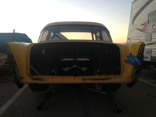 Car comes complete with most everything except motor and transmission. Car has roll cage, fiberglass front end and has been tubed. New 9-inch ford rear end. New tubular front a-arms with 2-inch dropped spindles. New power rack and pinion steering. New Q A-1 coil overs front and rear. New disk brakes in front and new 11-inch shoe brakes in rear. New master cylinder. New gauges. New painless wiring kit. New 20-gallon fuel cell. Two new batteries and battery boxes. Two new front seats. New door handles, new window cranks, new dome lite, new rubber seals for doors and trunk lid and new misc hardware. I have all the exterior trim and chrome with some new chrome. Car is currently licensed and registered.
